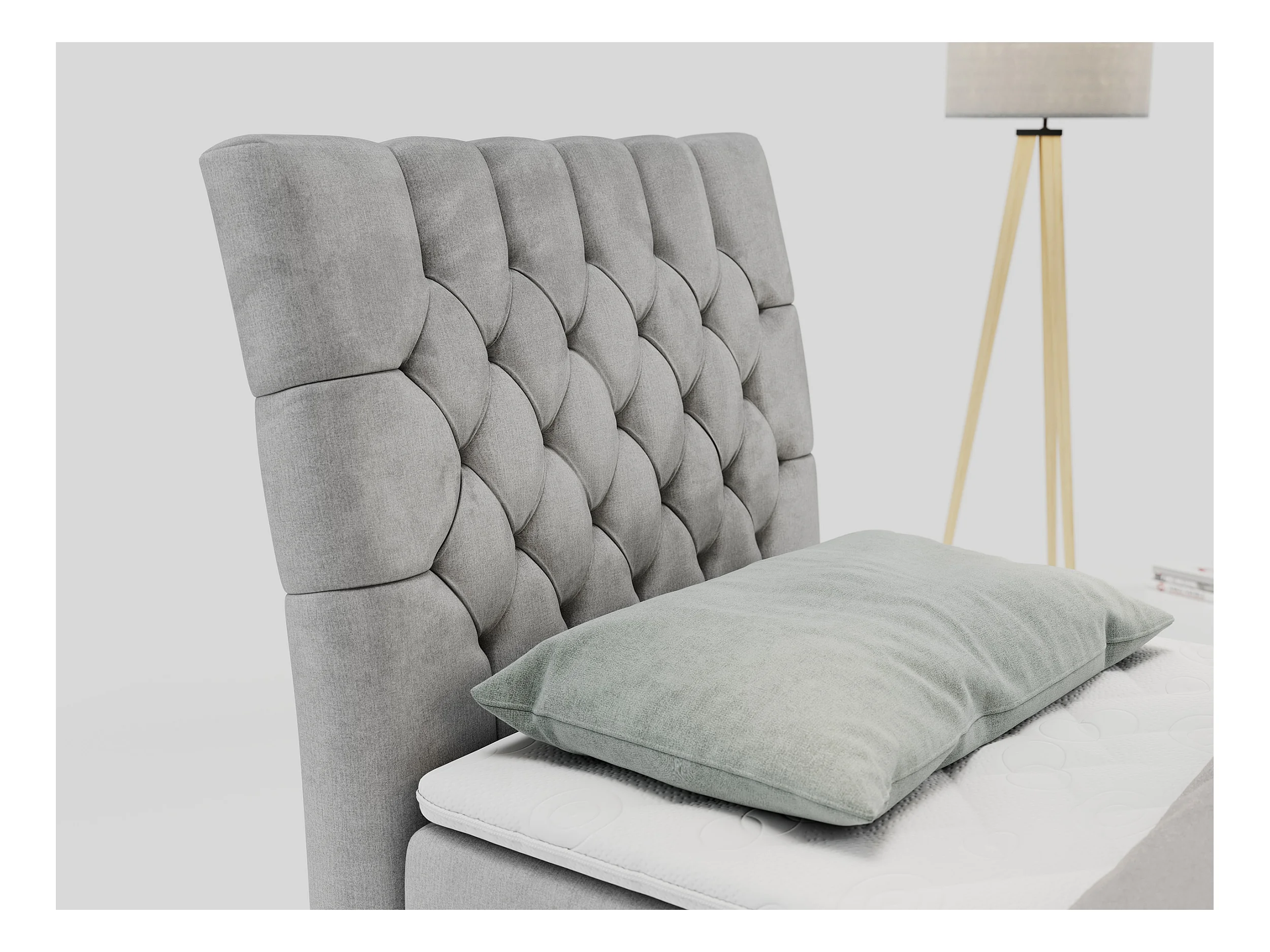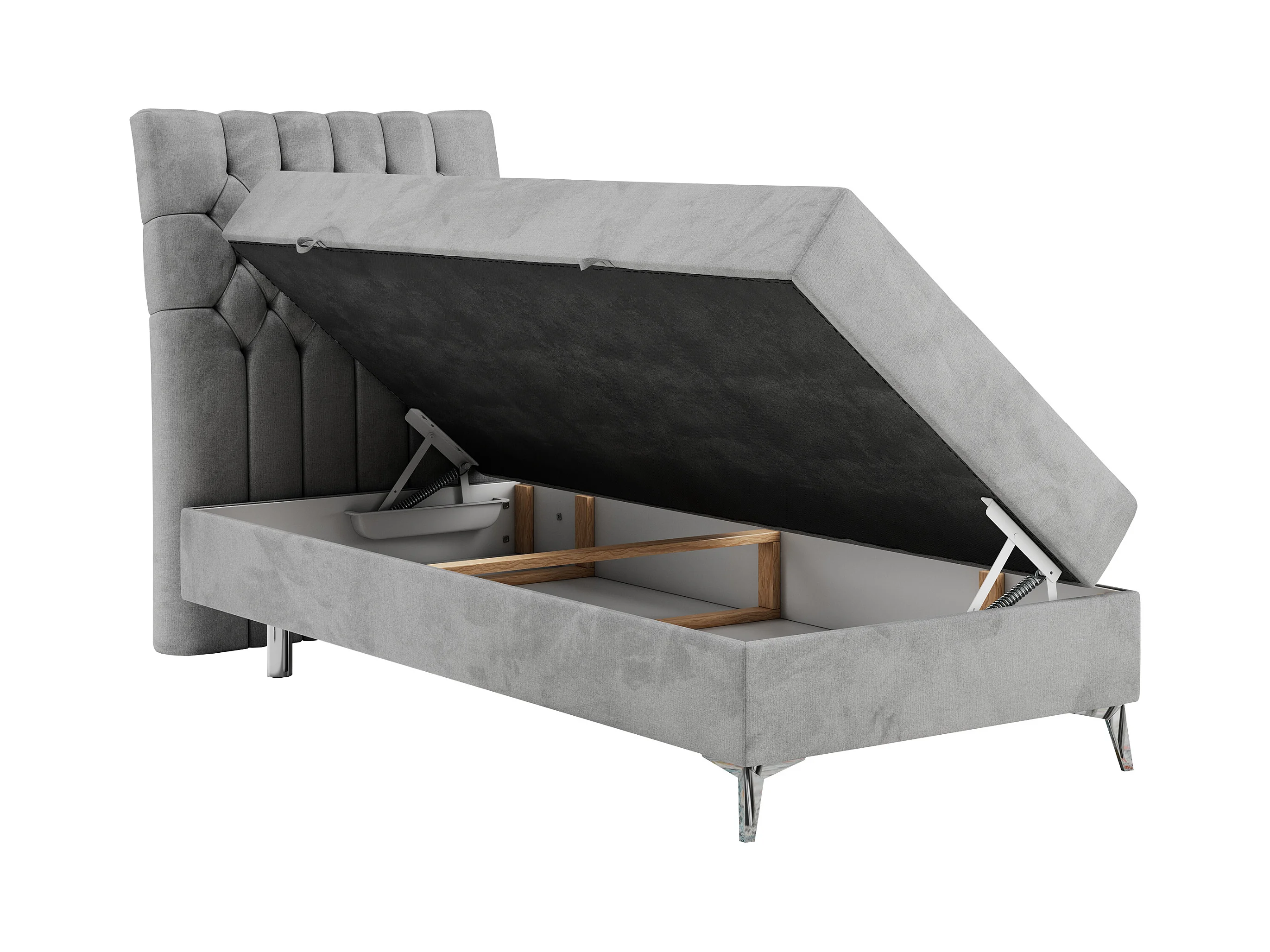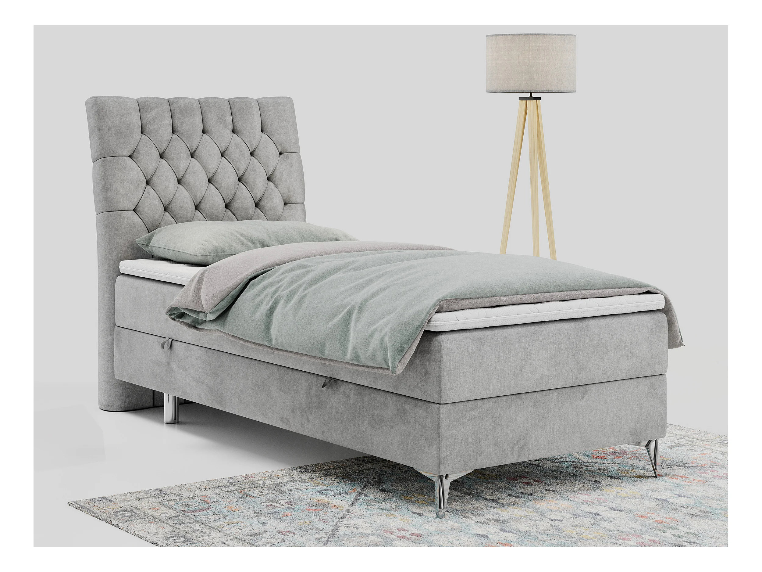 Boxspringbett MILEN - Polsterbett auf Metallbeine, Set mit Multipocket-Matratze, Gesteppte Kopfstütze - 90x200 cm - H4 - Hellgrau Velvet - Links Seite