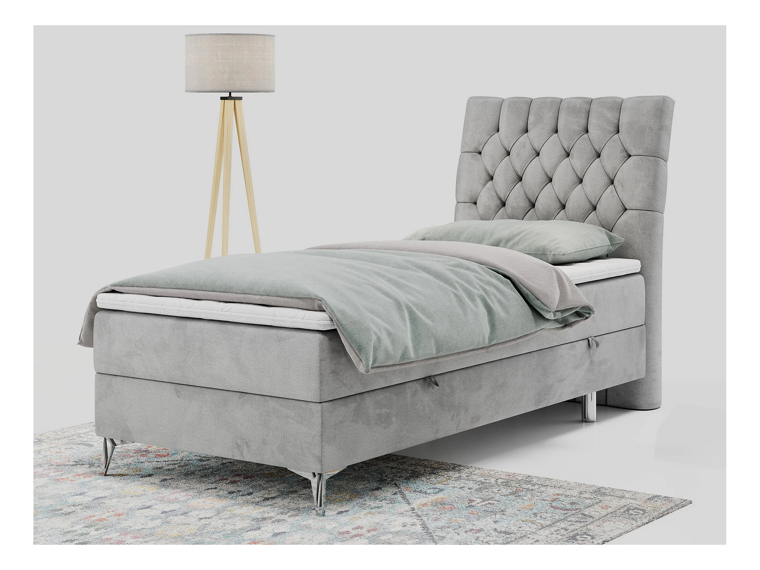 Boxspringbett MILEN - Polsterbett auf Metallbeine, Set mit Multipocket-Matratze, Gesteppte Kopfstütze - 90x200 cm - H4 - Hellgrau Velvet - Rechts Seite
