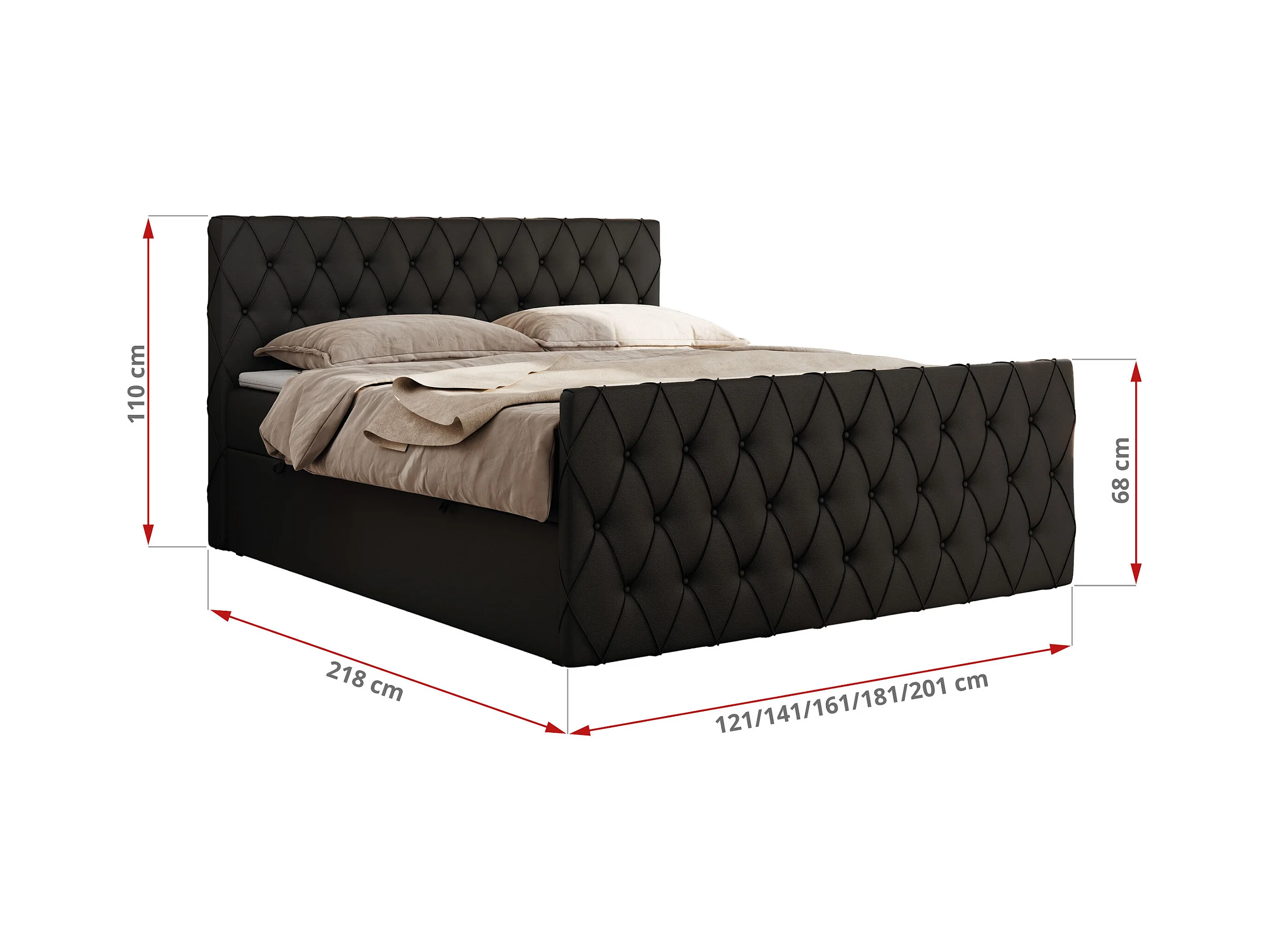 Boxspringbett MIREN DUO - mit gestepptem Kopfteil und Front, Multipocket-Matratze, zwei Bettkästen - 120x200 cm - H4 - Schwarz Kunstleder