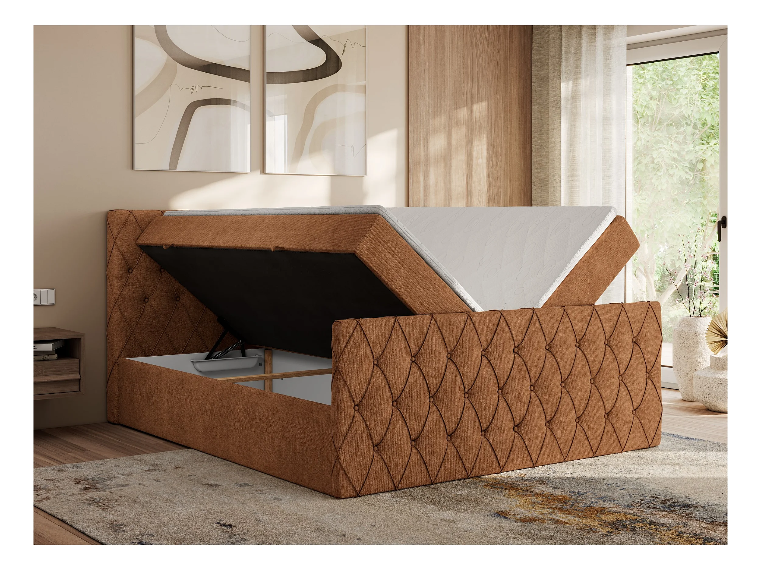 Boxspringbett MIREN DUO - mit gestepptem Kopfteil und Front, Multipocket-Matratze, zwei Bettkästen - 140x200 cm - H3 - Orange Strukture