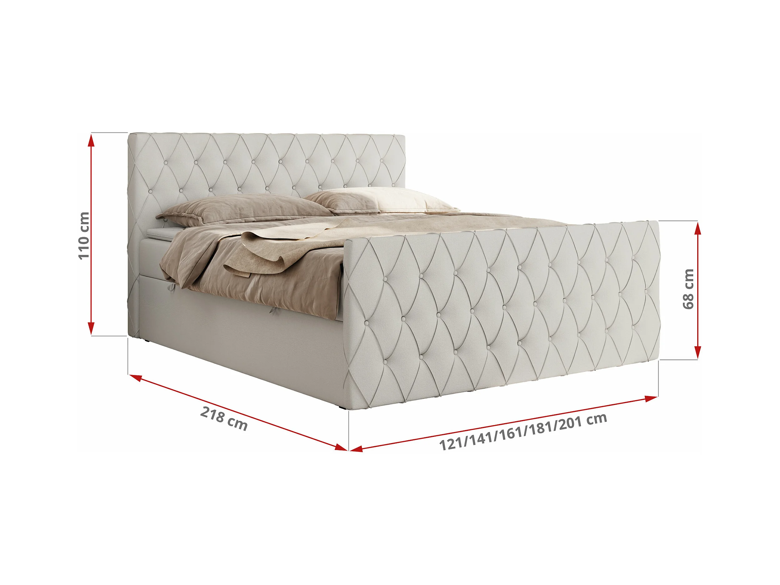 Boxspringbett MIREN DUO - mit gestepptem Kopfteil und Front, Multipocket-Matratze, zwei Bettkästen - 140x200 cm - H4 - Weiß Kunstleder