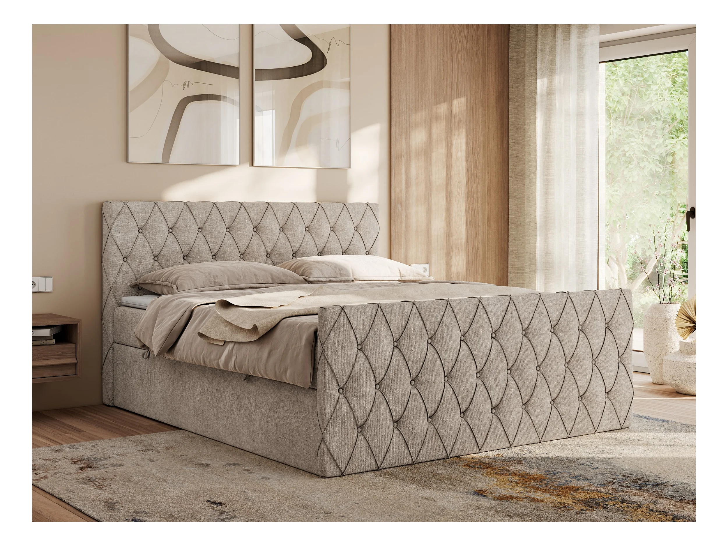 Boxspringbett MIREN DUO - mit gestepptem Kopfteil und Front, Multipocket-Matratze, zwei Bettkästen - 160x200 cm - H3 - Beige Strukture