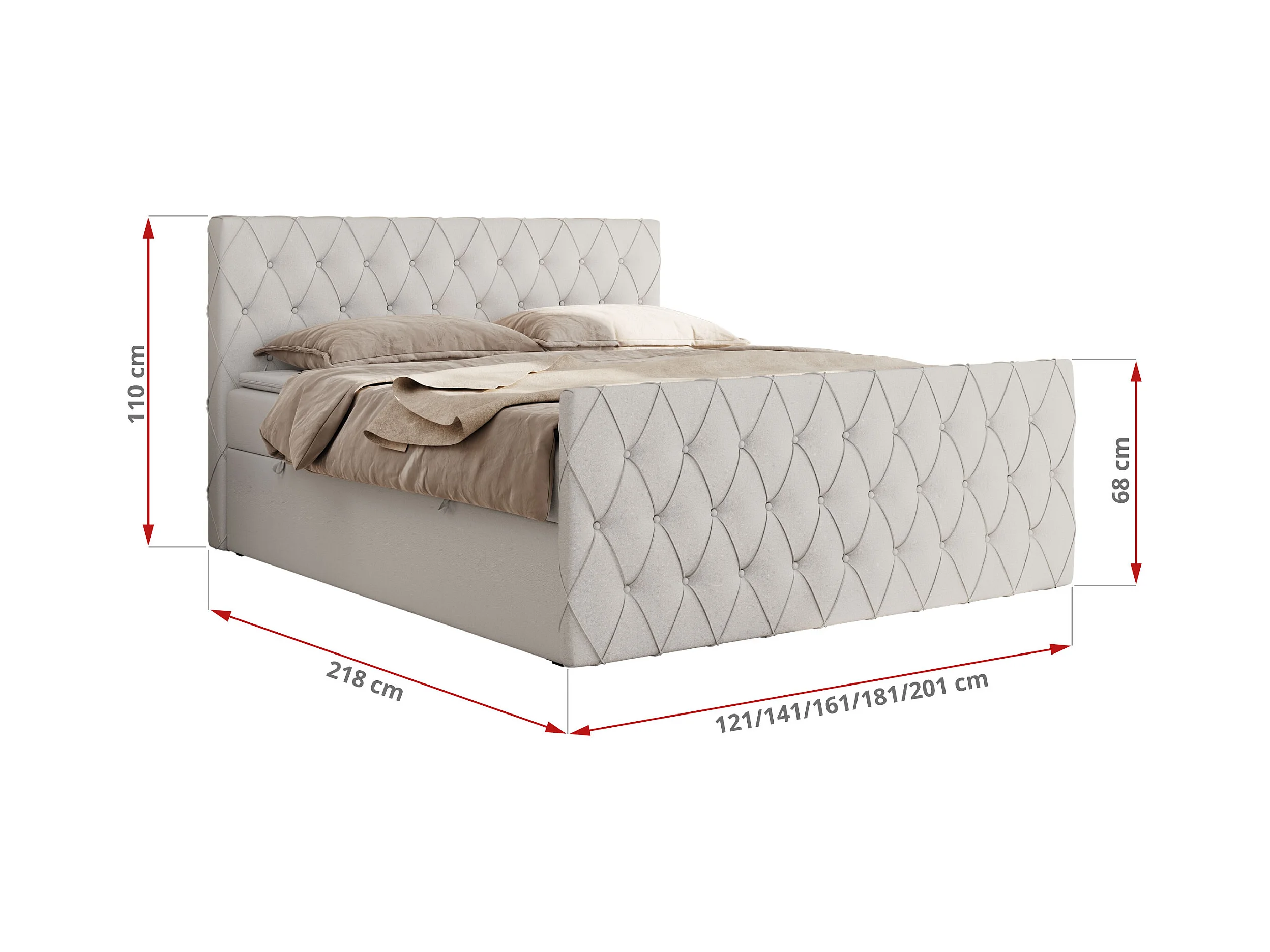 Boxspringbett MIREN DUO - mit gestepptem Kopfteil und Front, Multipocket-Matratze, zwei Bettkästen - 200x200 cm - H3 - Weiß Kunstleder