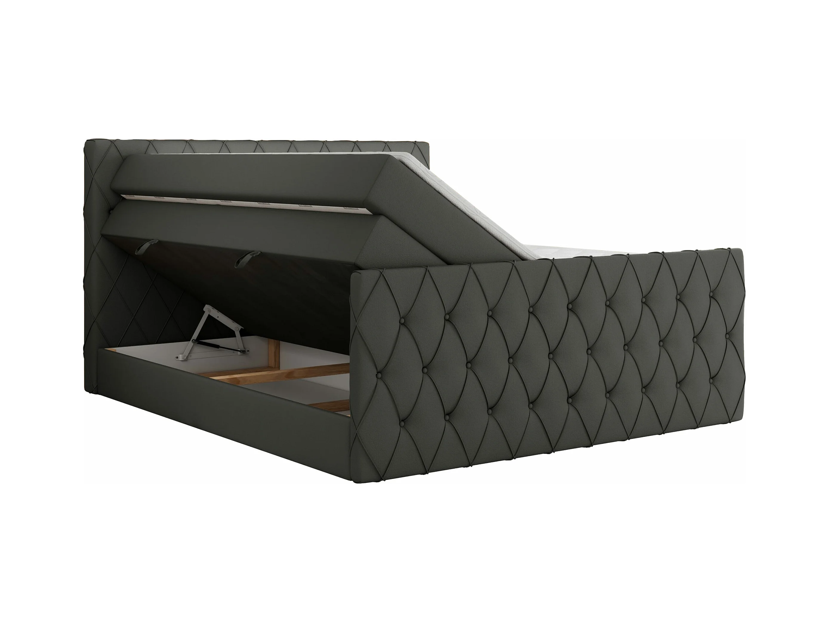 Boxspringbett MIREN KING DUO - für Schlafzimmer mit zwei Multipocket-Matratzen und Topper, gestepptes Kopfteil und Front - 140x200 cm - H3 - Grau Kunstleder