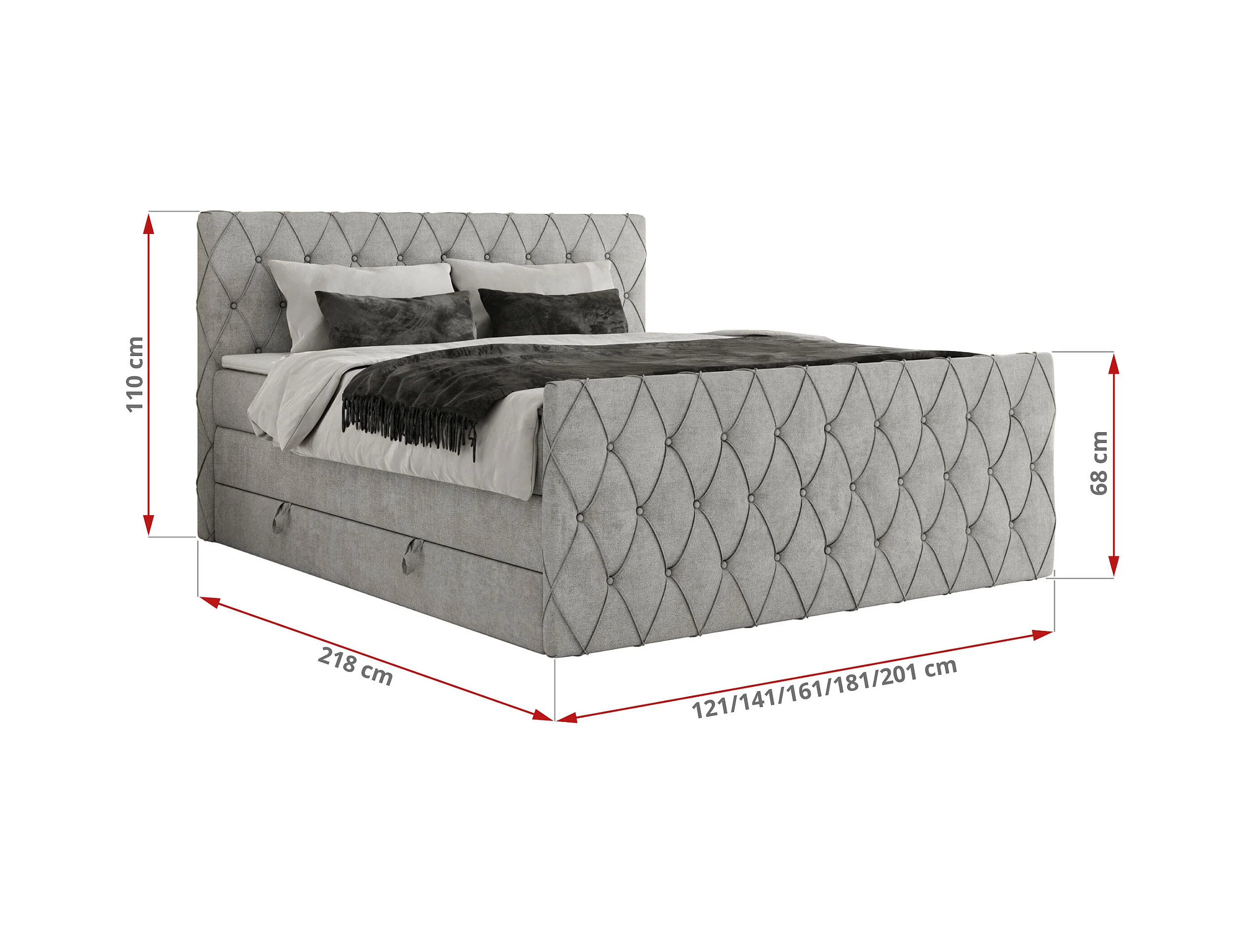 Boxspringbett MIREN KING DUO - für Schlafzimmer mit zwei Multipocket-Matratzen und Topper, gestepptes Kopfteil und Front - 140x200 cm - H4 - Hellgrau Strukture