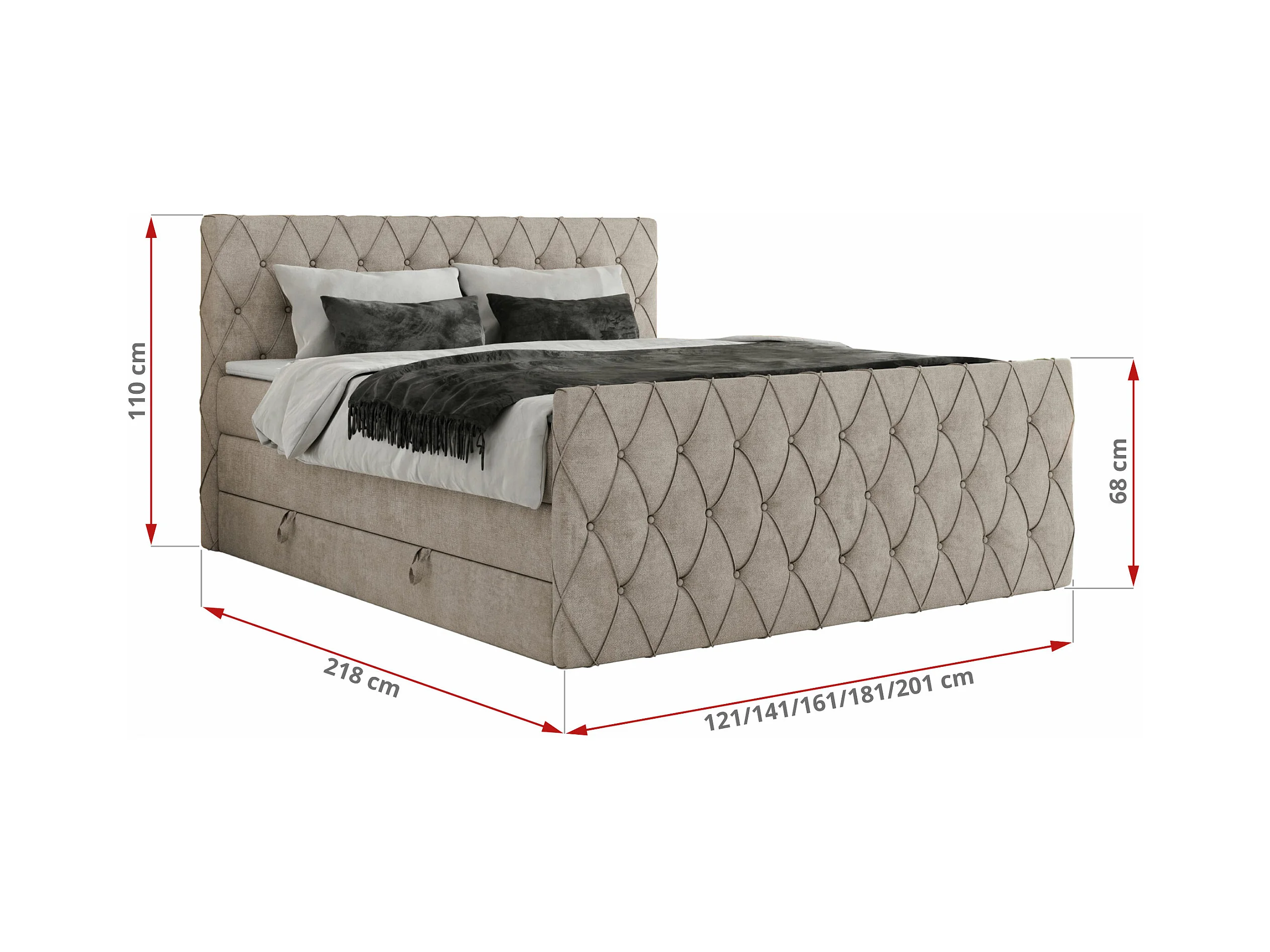 Boxspringbett MIREN KING DUO - für Schlafzimmer mit zwei Multipocket-Matratzen und Topper, gestepptes Kopfteil und Front - 160x200 cm - H3 - Beige Strukture
