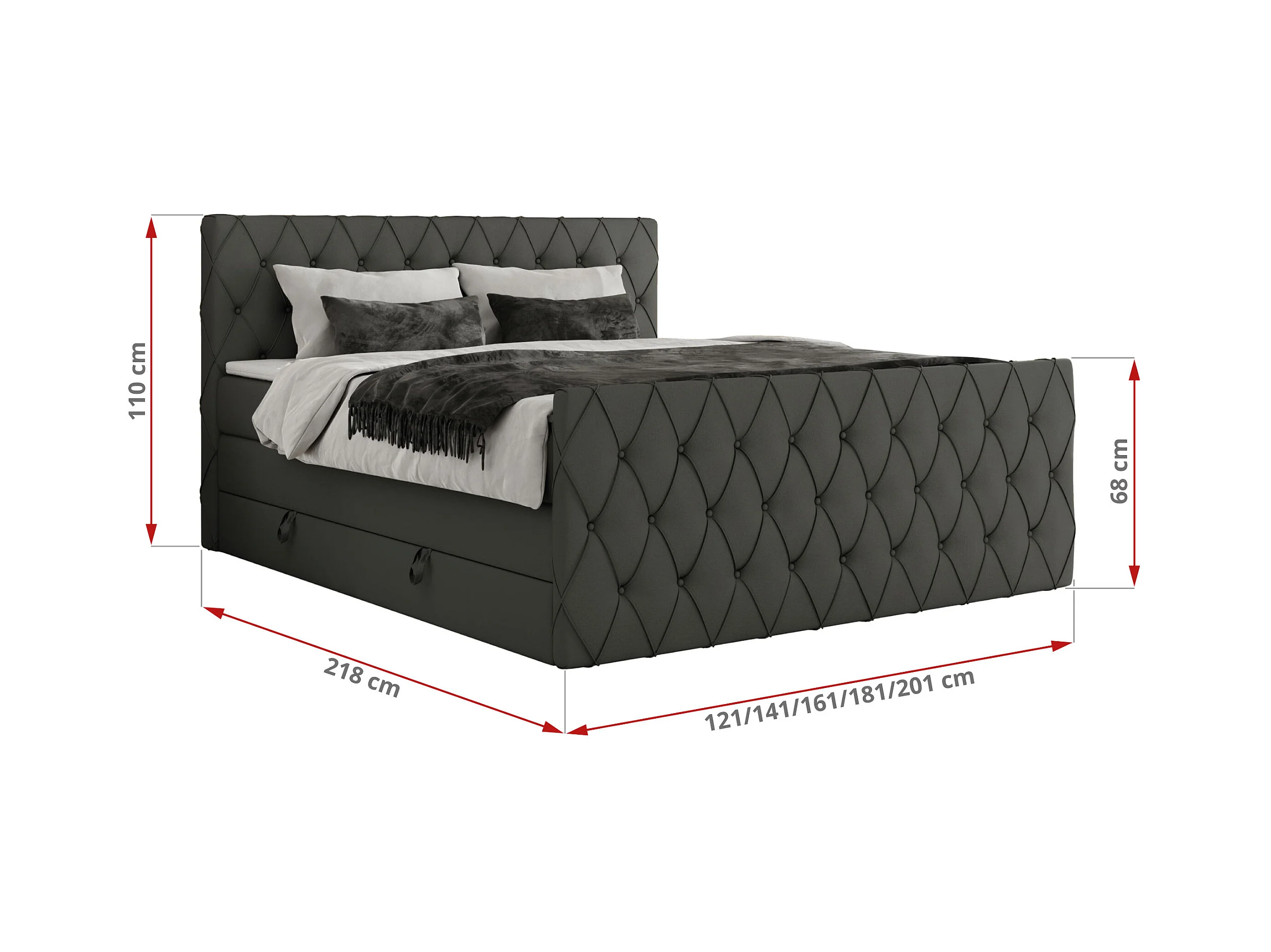Boxspringbett MIREN KING DUO - für Schlafzimmer mit zwei Multipocket-Matratzen und Topper, gestepptes Kopfteil und Front - 160x200 cm - H3 - Grau Kunstleder