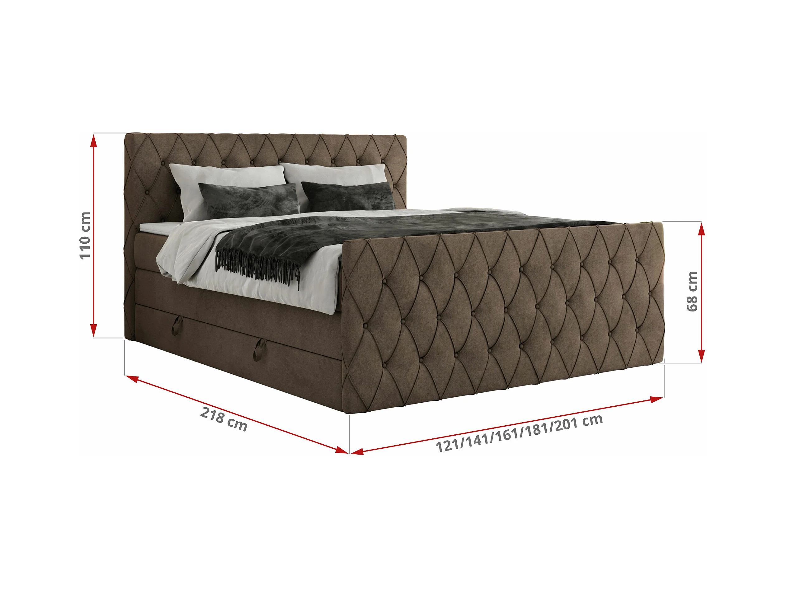 Boxspringbett MIREN KING DUO - für Schlafzimmer mit zwei Multipocket-Matratzen und Topper, gestepptes Kopfteil und Front - 160x200 cm - H4 - Braun Velvet