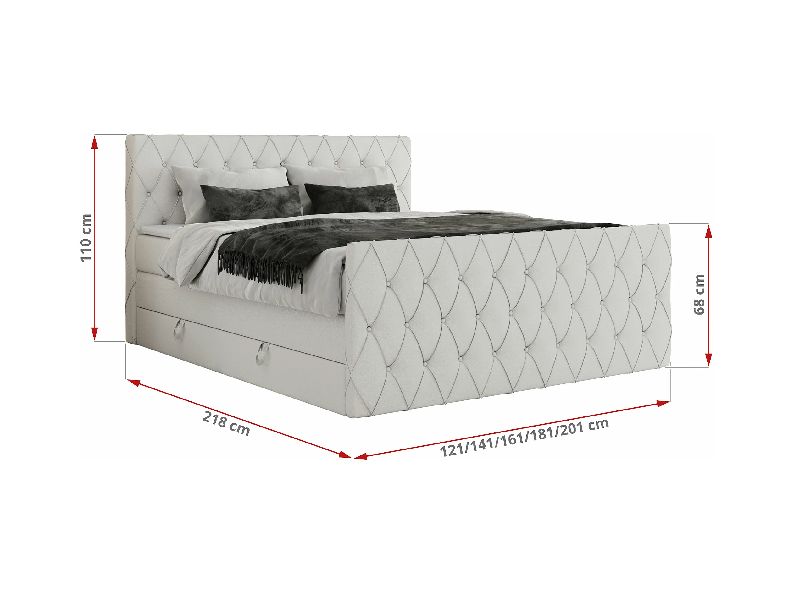 Boxspringbett MIREN KING DUO - für Schlafzimmer mit zwei Multipocket-Matratzen und Topper, gestepptes Kopfteil und Front - 160x200 cm - H4 - Weiß Kunstleder