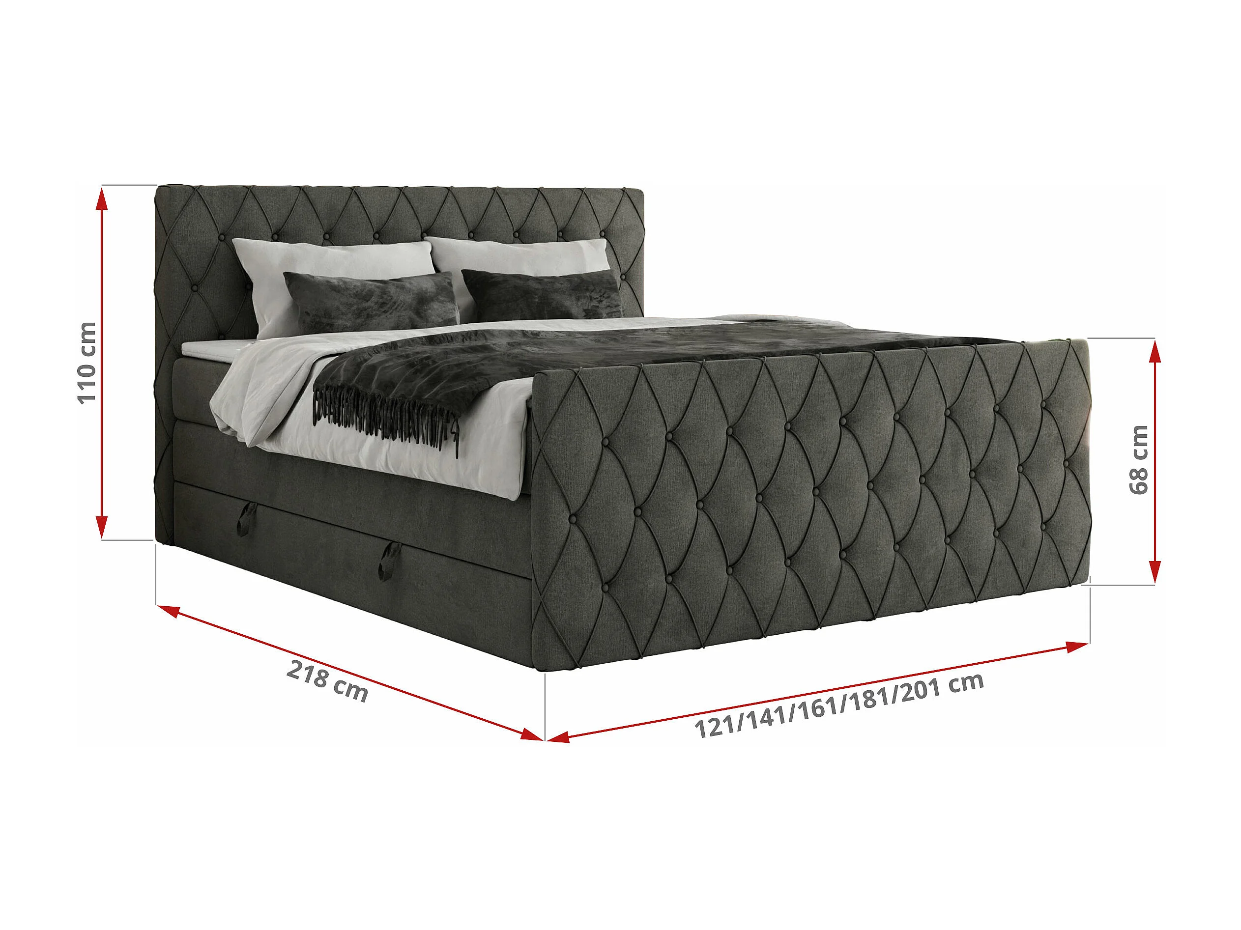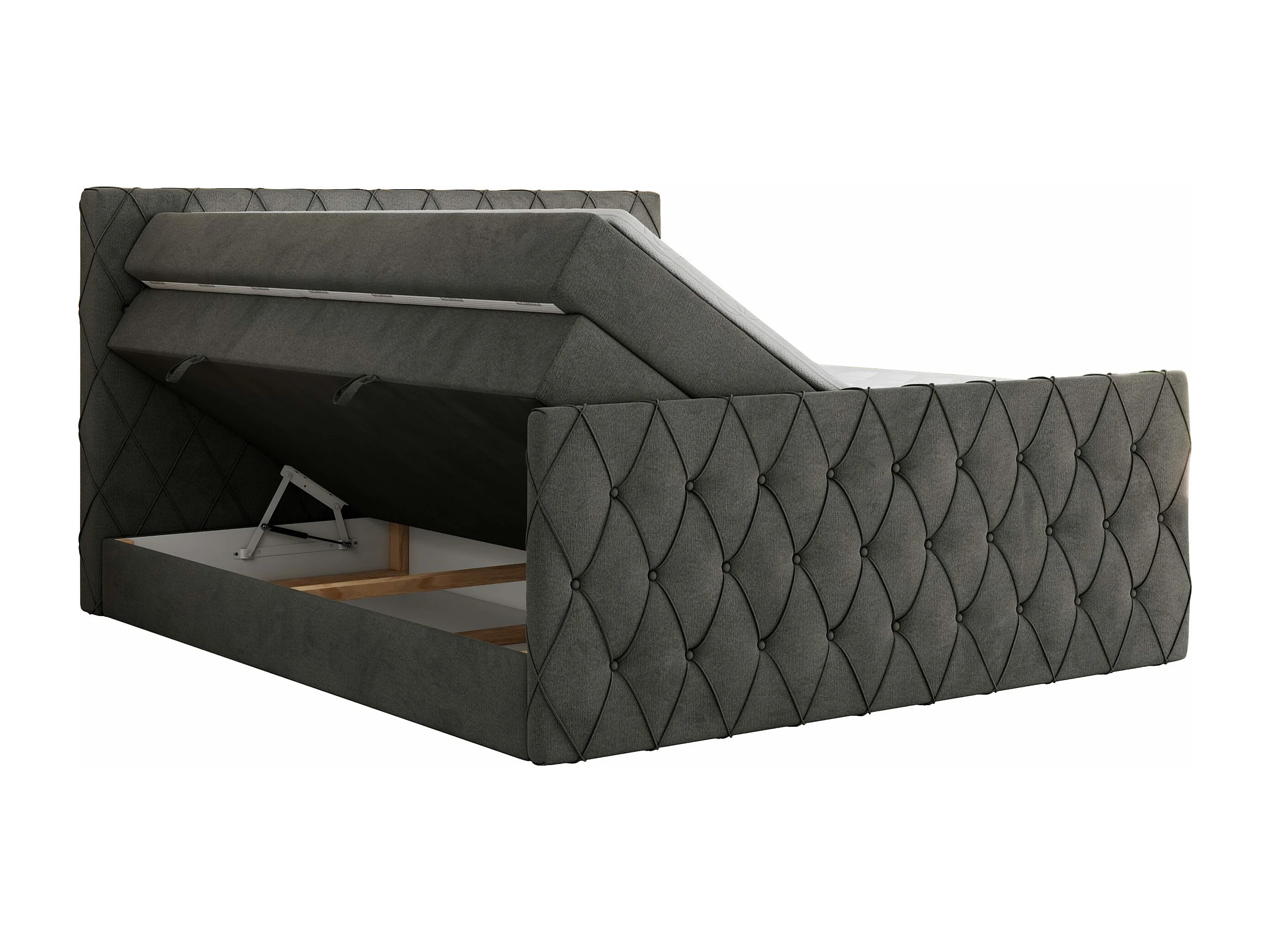 Boxspringbett MIREN KING DUO - für Schlafzimmer mit zwei Multipocket-Matratzen und Topper, gestepptes Kopfteil und Front - 180x200 cm - H4 - Dunkelgrau Velvet
