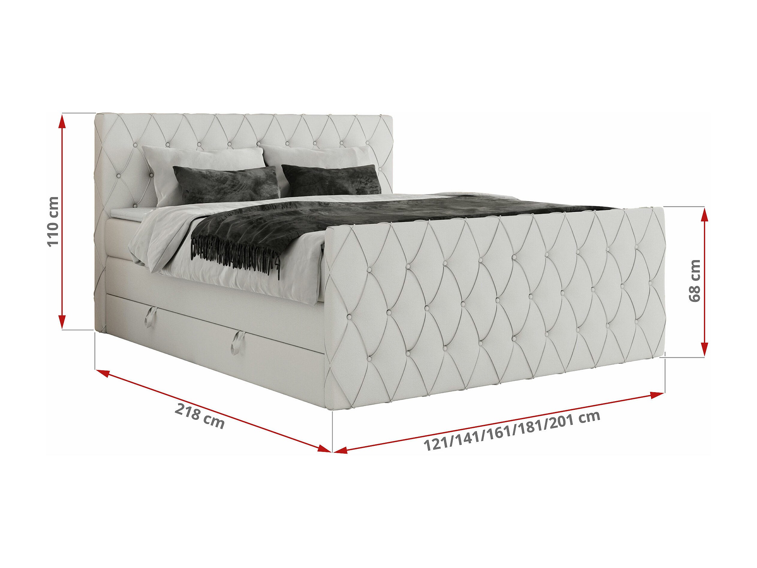 Boxspringbett MIREN KING DUO - für Schlafzimmer mit zwei Multipocket-Matratzen und Topper, gestepptes Kopfteil und Front - 200x200 cm - H3 - Weiß Kunstleder