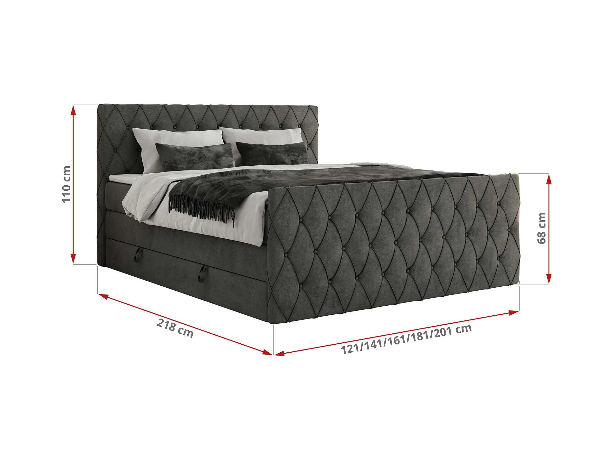 Boxspringbett MIREN KING DUO - für Schlafzimmer mit zwei Multipocket-Matratzen und Topper, gestepptes Kopfteil und Front - 200x200 cm - H4 - Dunkelgrau Velvet