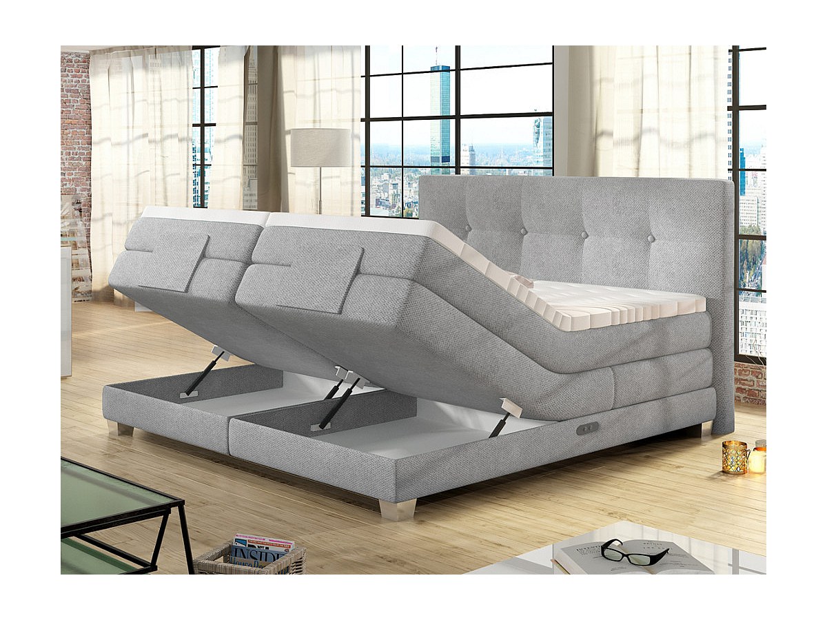 Boxspringbett mit Bettkasten CHIMERE - 2 x 80 x 200 cm - Hellgrau