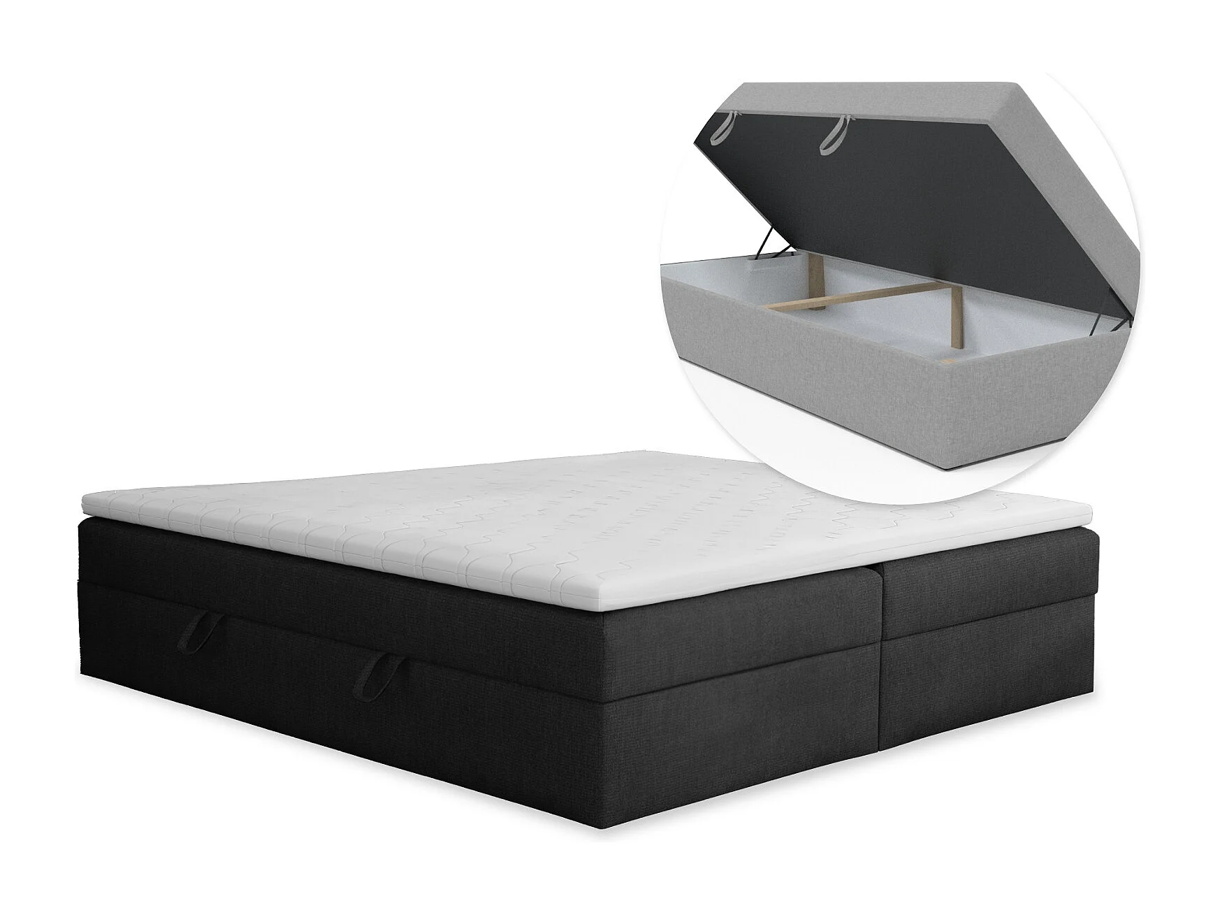 BOXSPRINGBETT mit Bettkasten und Topper 160x200 cm, Soro 100 - Graphit