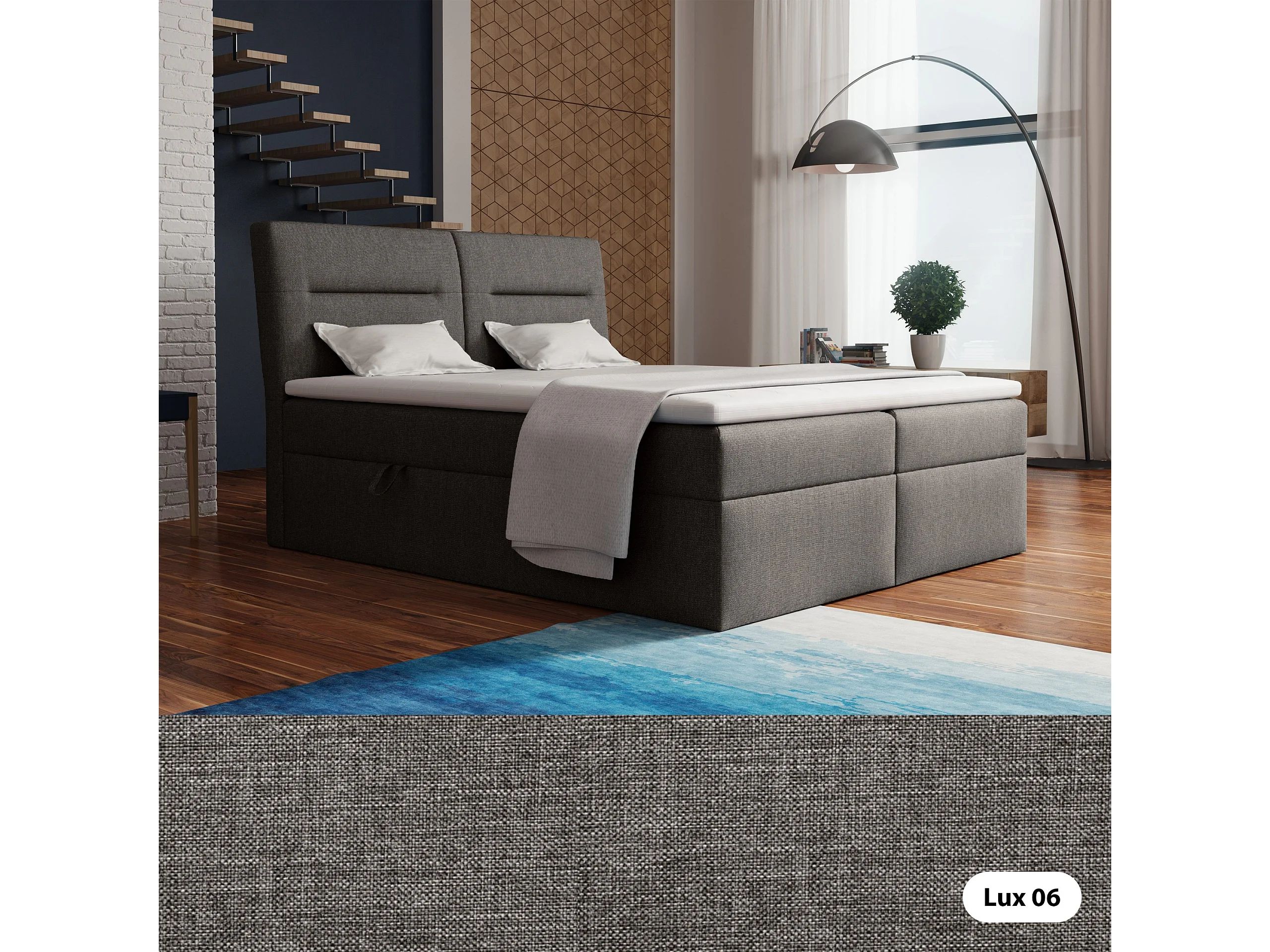 BOXSPRINGBETT mit Bettkästen und Topper Moderno 160x200 cm, Lux 06 (Grau)