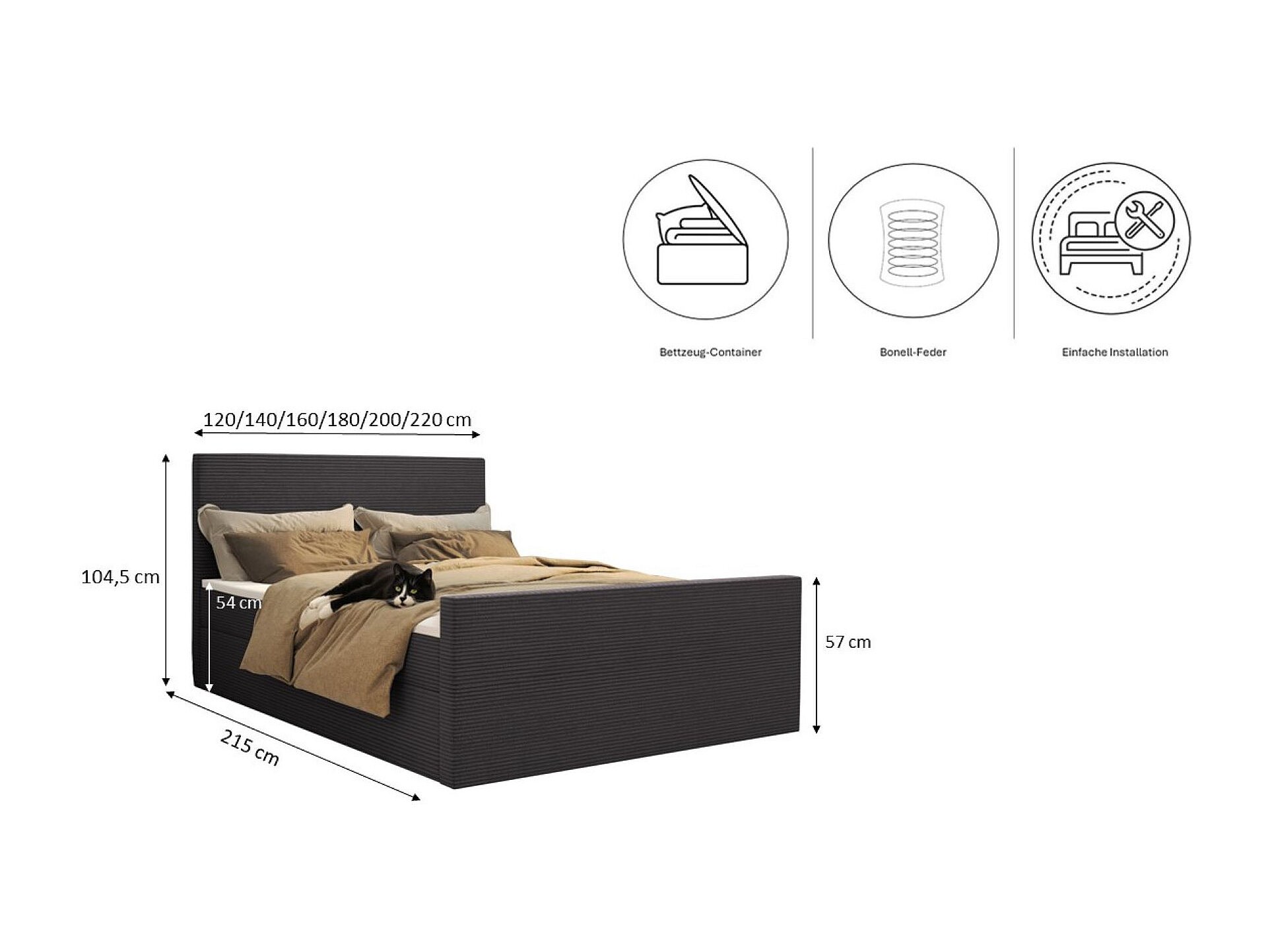 Boxspringbett mit bettkasten und topper VIESTA stoff Poso Dunkelgrau 120x200 cm H2-Pocket