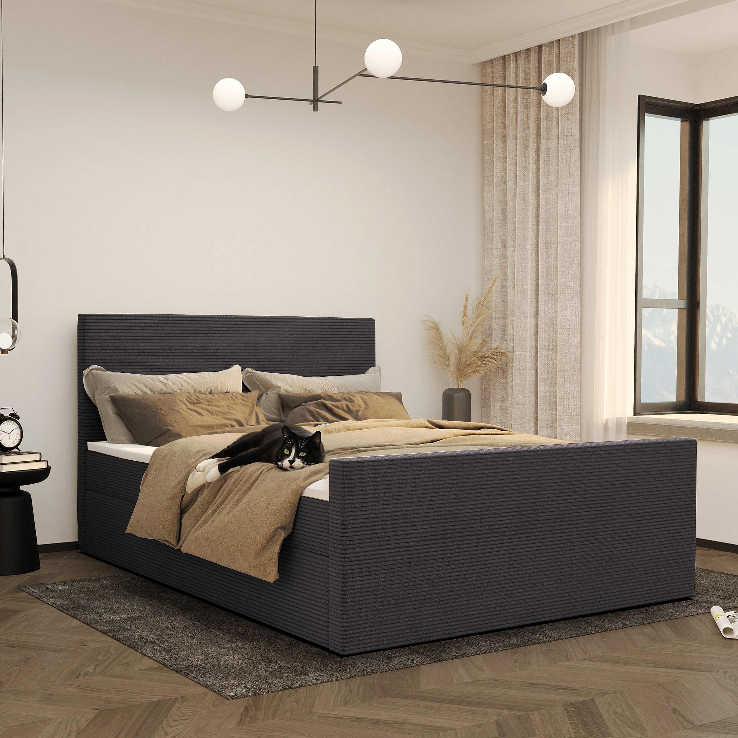 Boxspringbett mit bettkasten und topper VIESTA stoff Poso Dunkelgrau 200x200 cm H2-Pocket