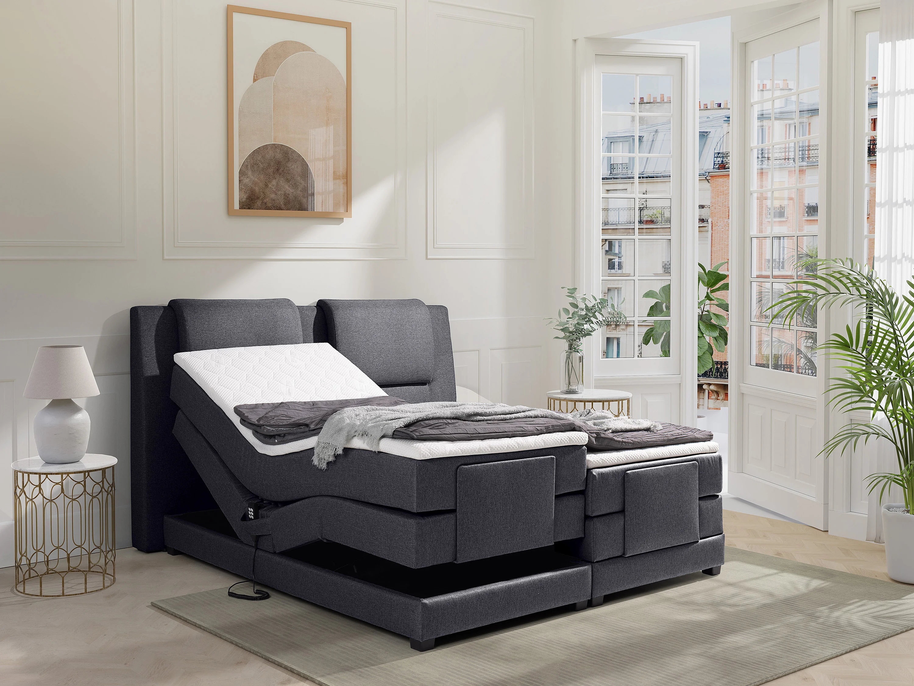 Boxspringbett mit Bettkopfteil + elektrischem Untergestell mit Relaxfunktion + Matratzen + Topper - 2 x 90 x 200 cm - Stoff - Anthrazit - CASTEL II de PALACIO
