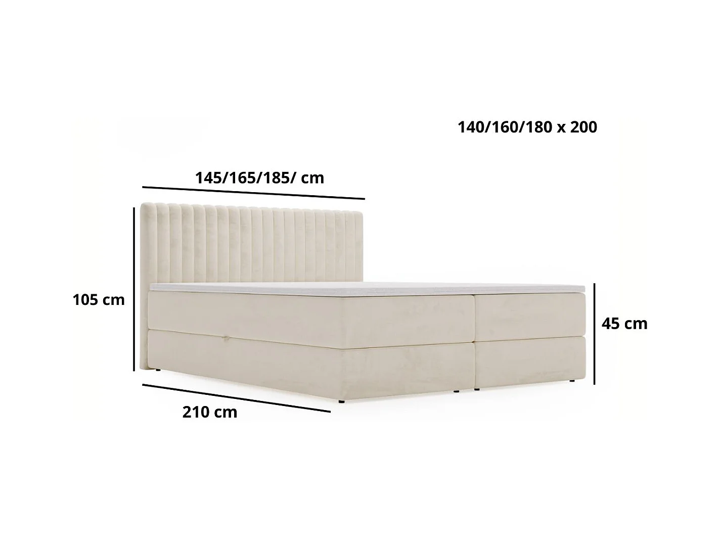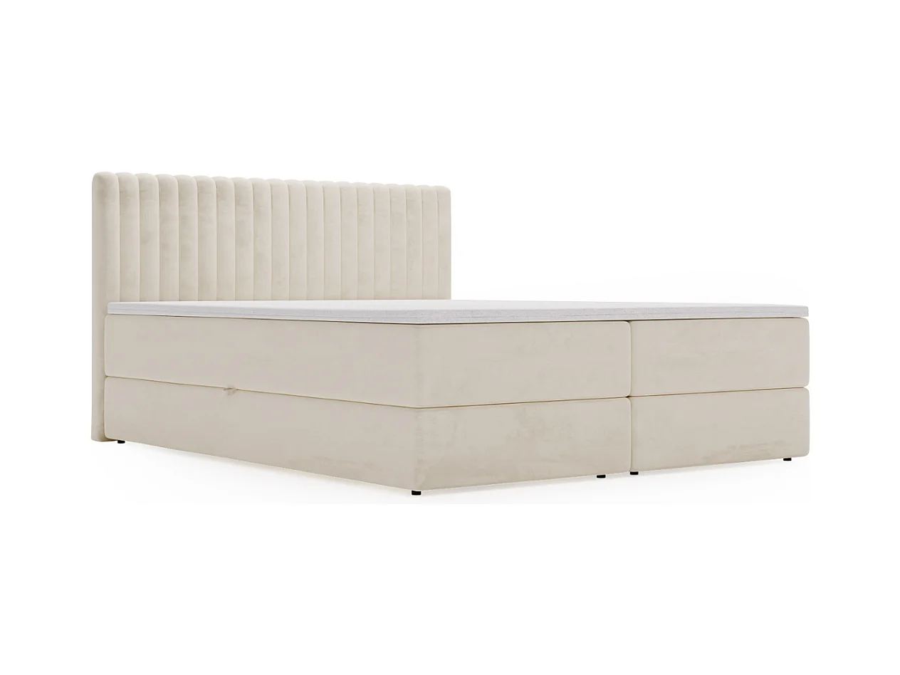 Boxspringbett mit Kopfteil - 140 x 200 - Samtstoff - Beige - Matratze - Topper - MARBELLA