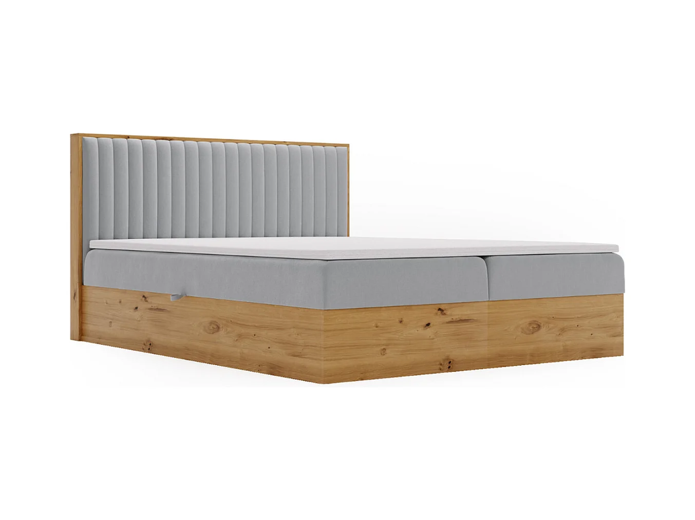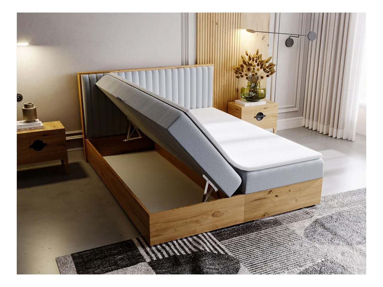 Boxspringbett mit Kopfteil - 140 x 200 - Samtstoff - Hellgrau - Matratze - Topper - FOREST