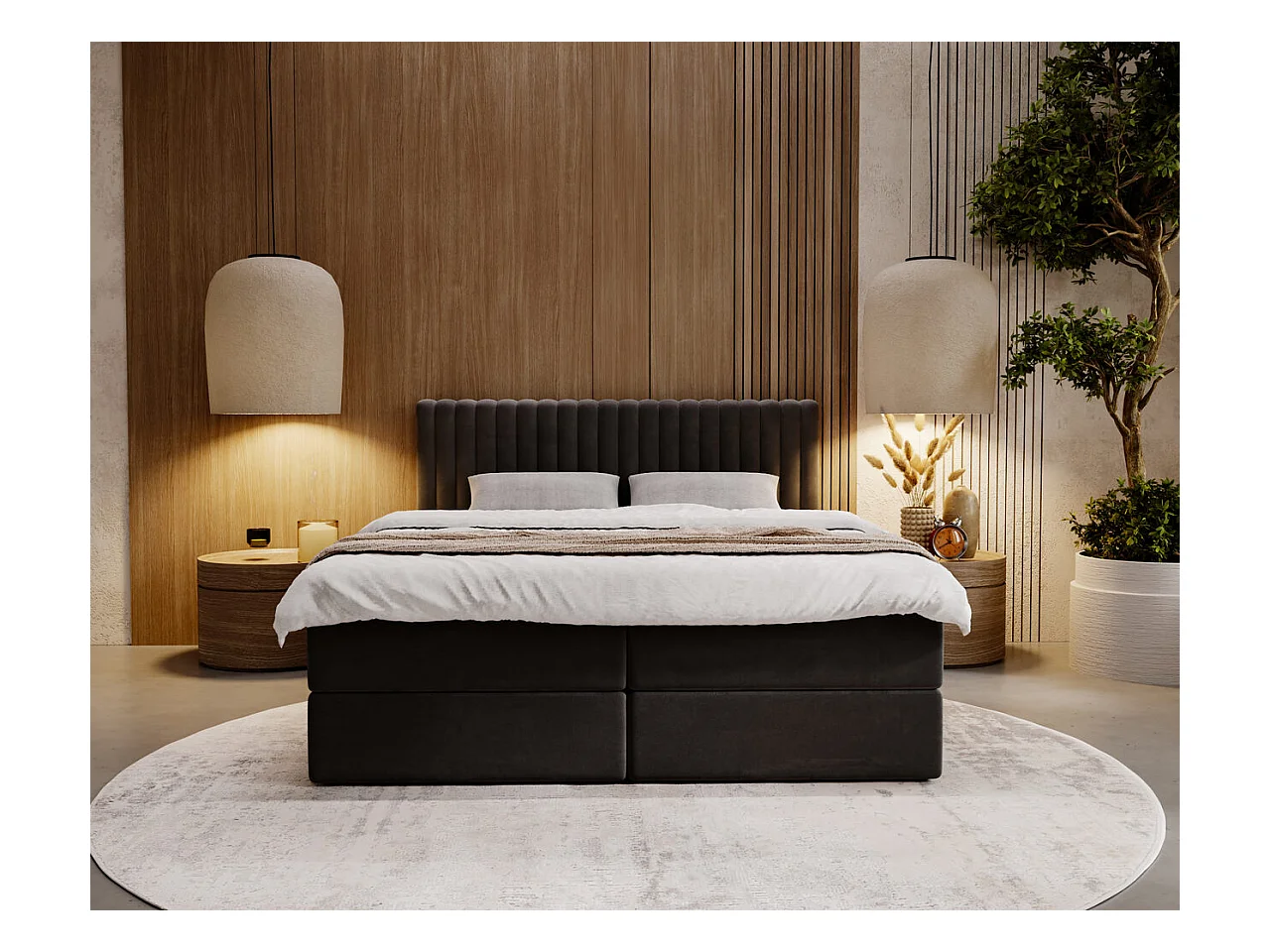 Boxspringbett mit Kopfteil - 140 x 200 - Samtstoff - Anthracite - Matratze - Topper - MARBELLA