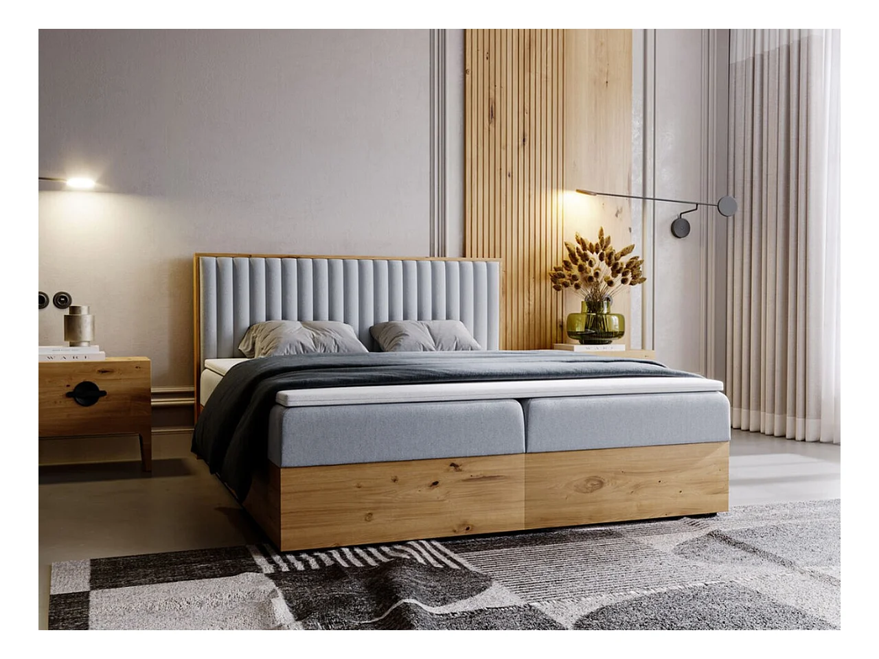 Boxspringbett mit Kopfteil - 160 x 200 - Samtstoff - Hellgrau - Matratze - Topper - FOREST