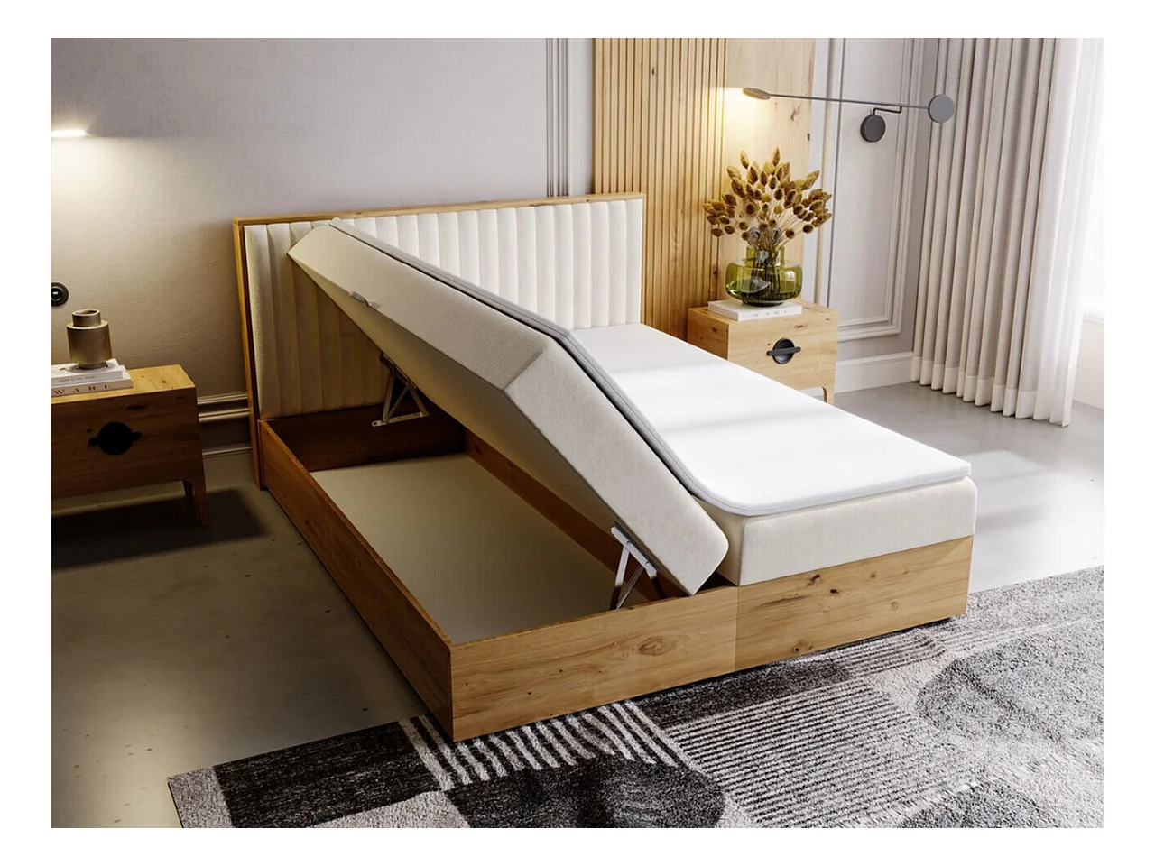 Boxspringbett mit Kopfteil - 180 x 200 - Samtstoff - Beige - Matratze - Topper - FOREST