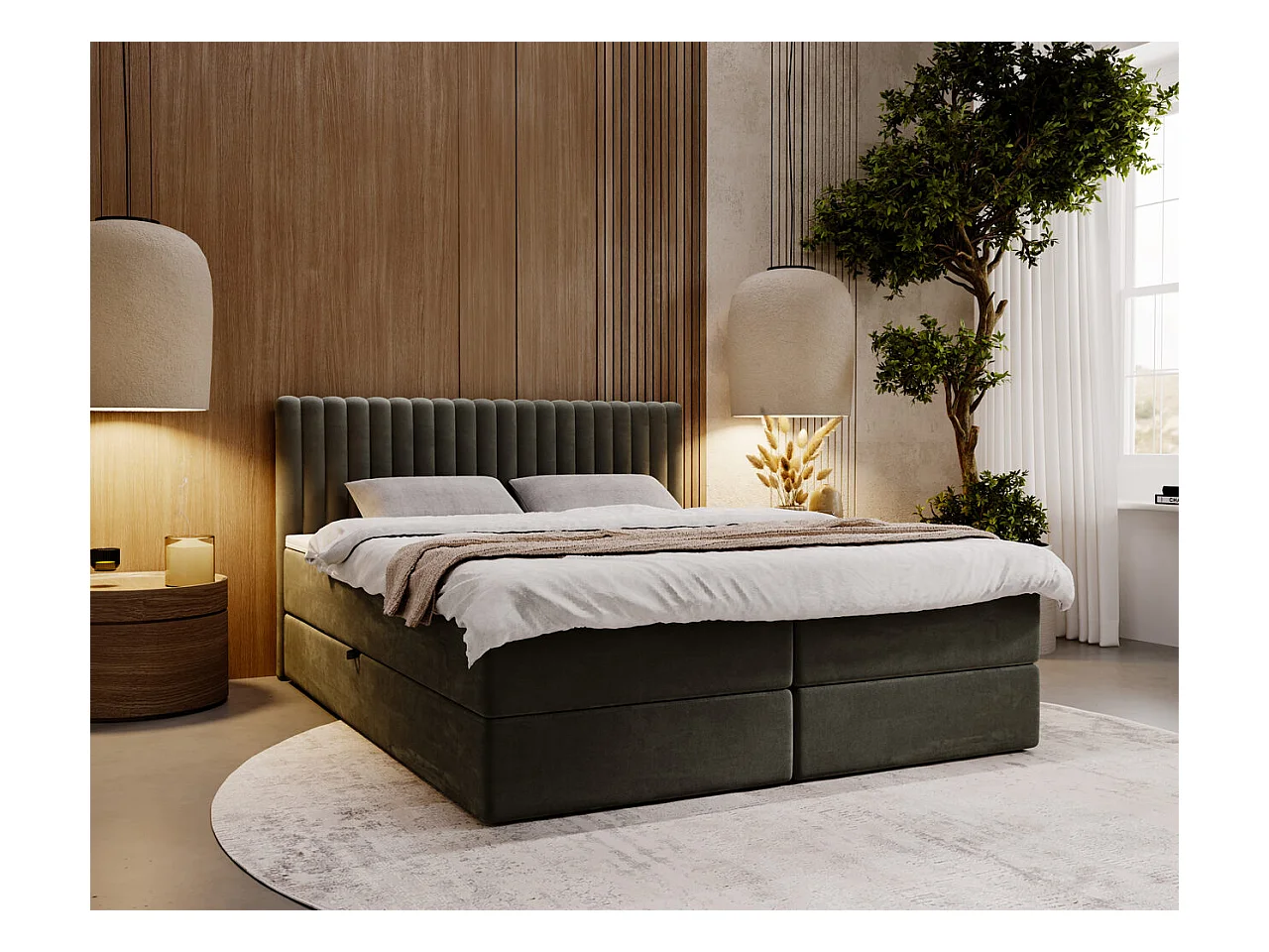 Boxspringbett mit Kopfteil - 180 x 200 - Samtstoff - Grau - Matratze - Topper - MARBELLA