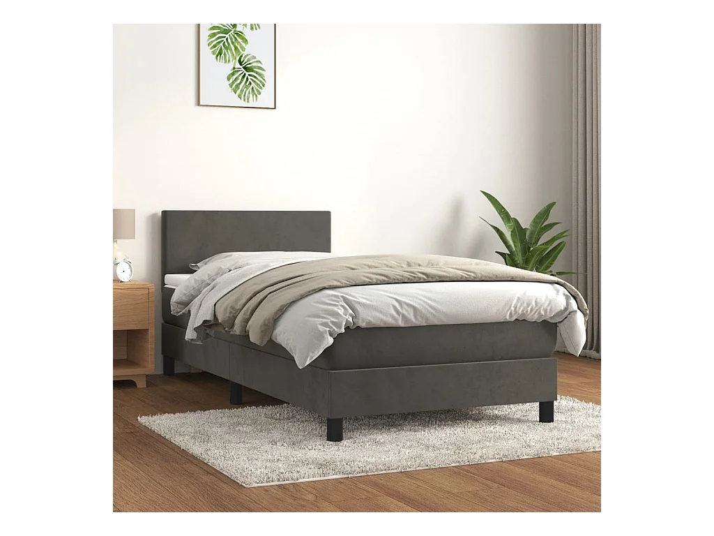 Boxspringbett mit Matratze,Bett für Schlafzimmer Dunkelgrau 90x200 cm Samt -CFW10001