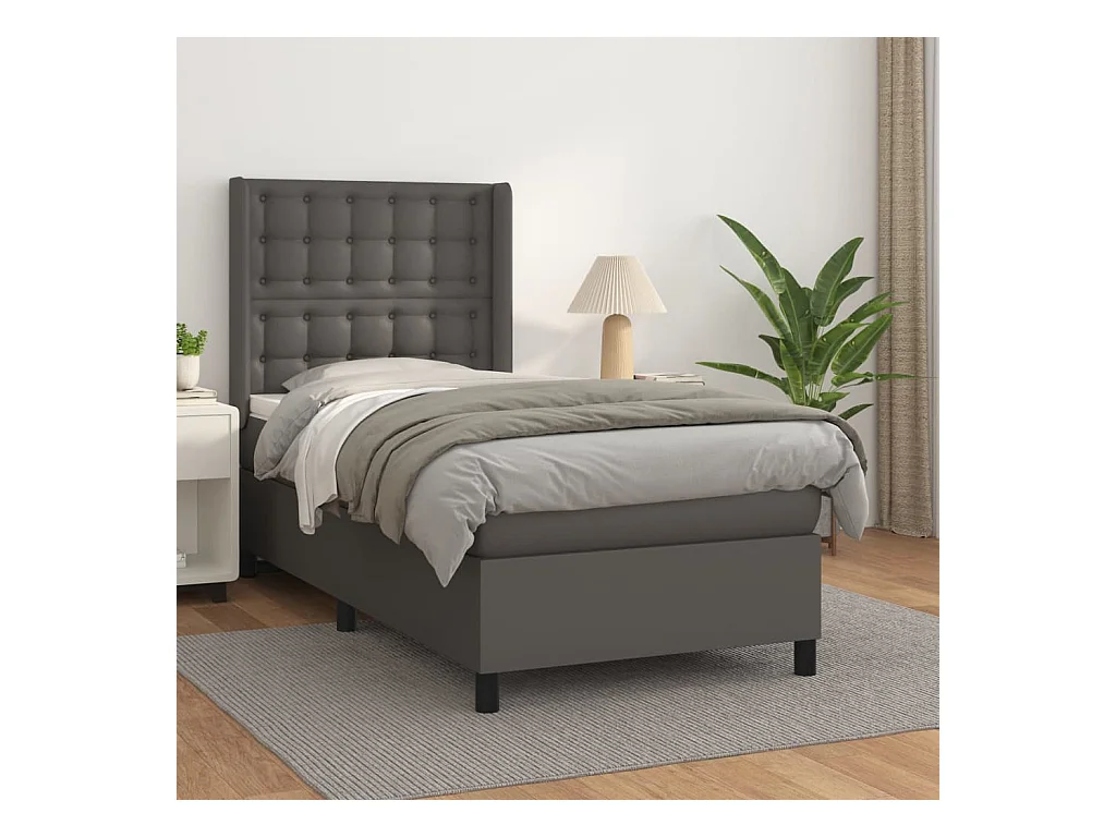 Boxspringbett mit Matratze,Bett für Schlafzimmer Grau 90x190 cm Kunstleder -CFW11185