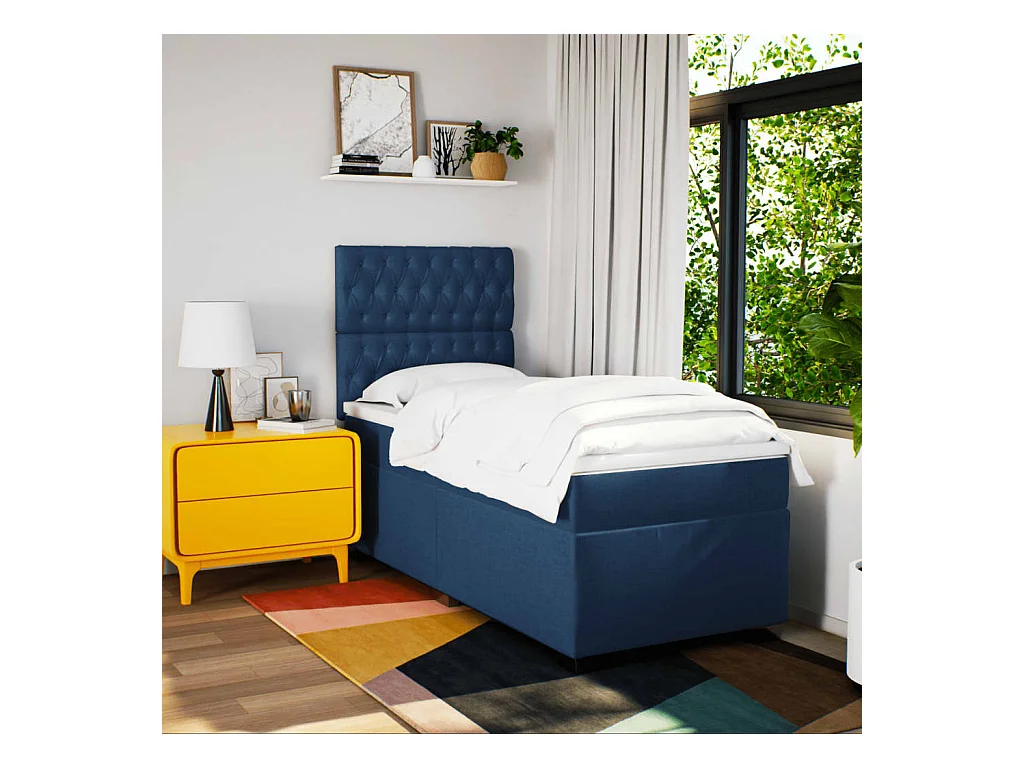 Boxspringbett mit Matratze Blau 100x200 cm Stoff