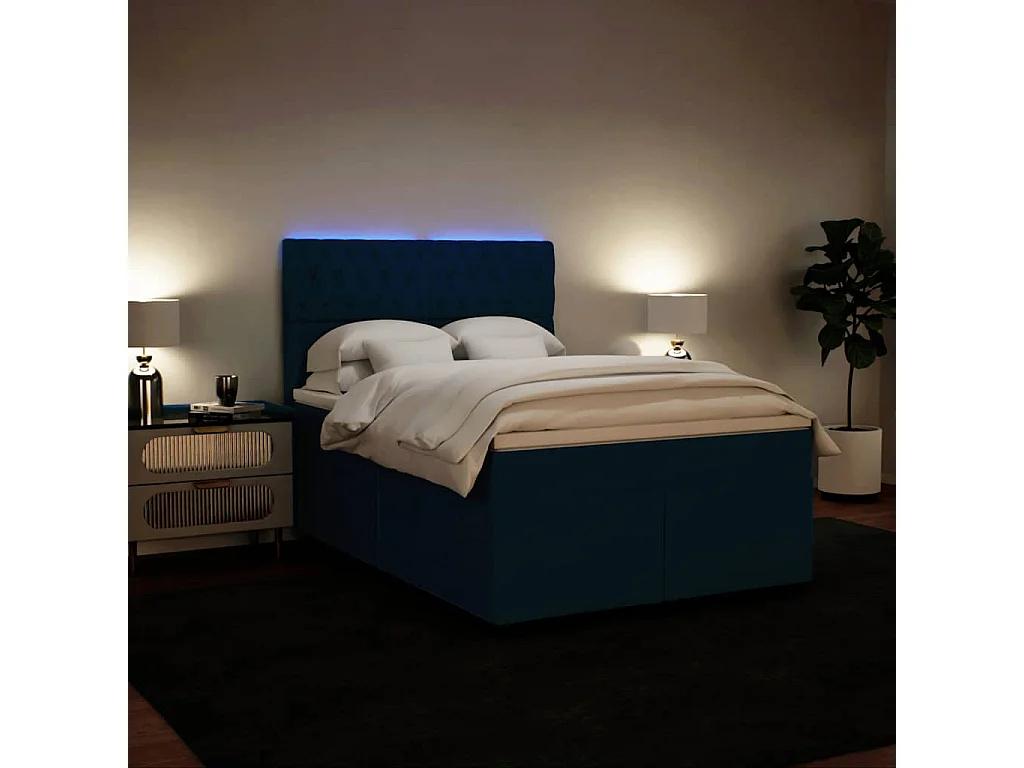 Boxspringbett mit Matratze Blau 140x190 cm Samt