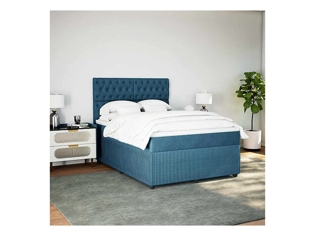 Boxspringbett mit Matratze Blau 140x200 cm Samt