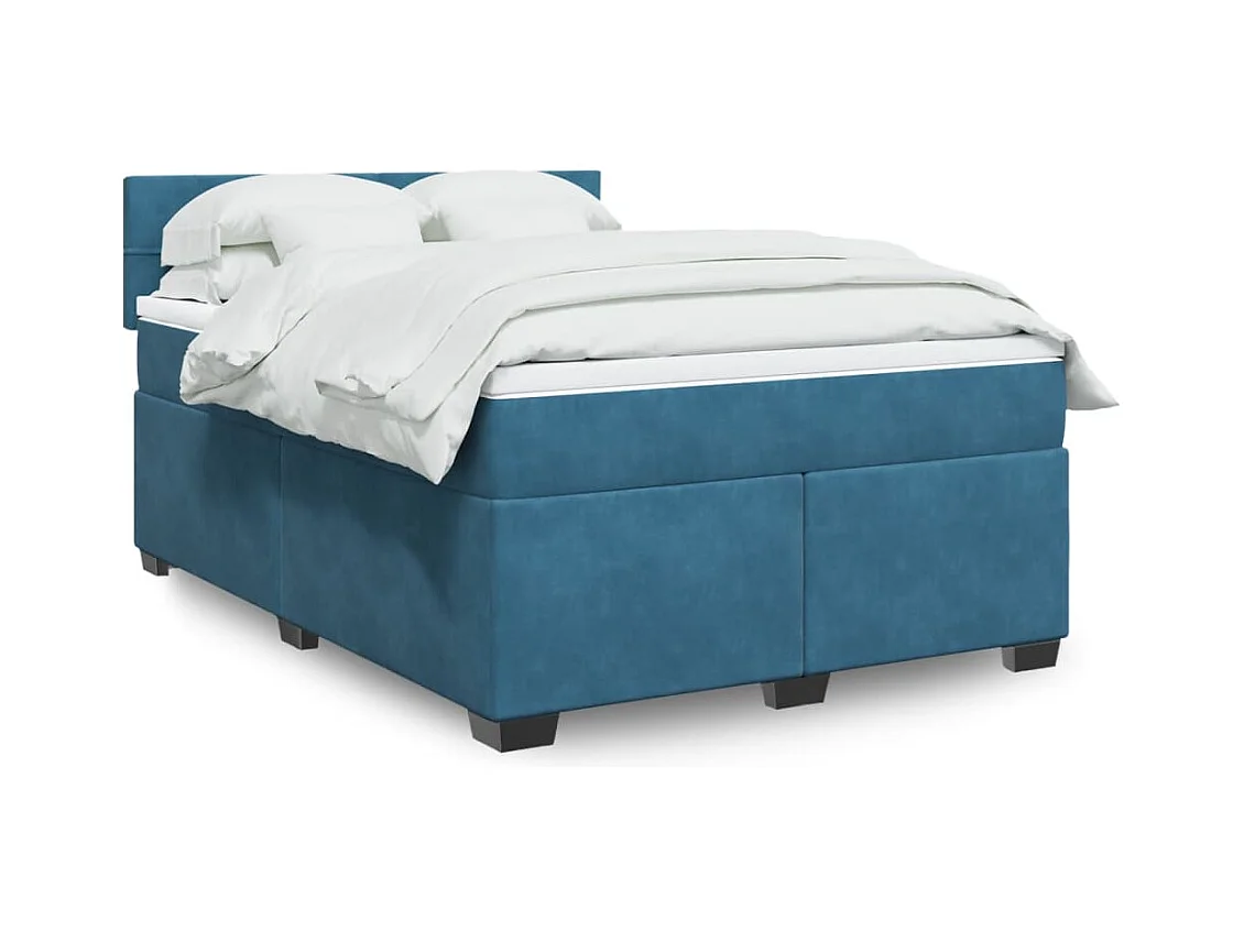 Boxspringbett mit Matratze Blau 160x200 cm Samt