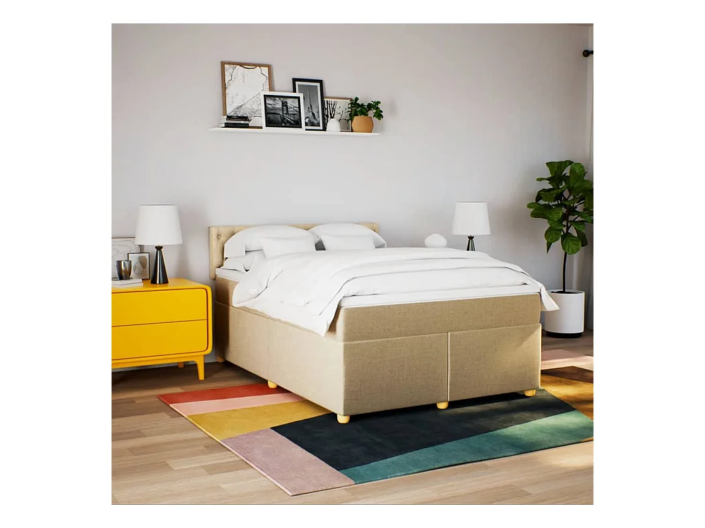 Boxspringbett mit Matratze Creme 140x200 cm Stoff