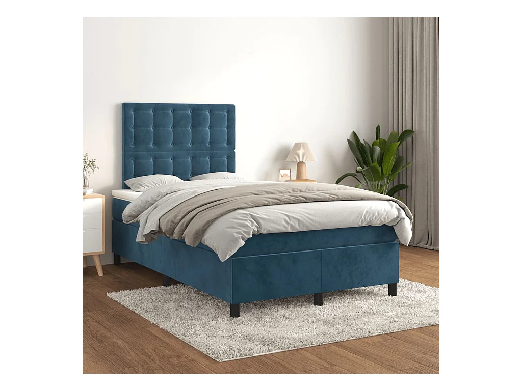 Boxspringbett mit Matratze Dunkelblau 120x190 cm Samt