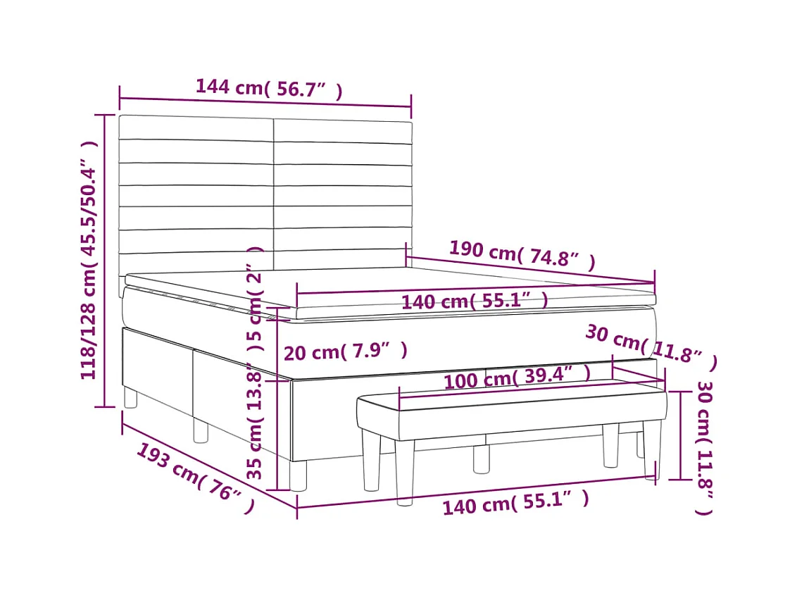 Boxspringbett mit Matratze Dunkelgrau 140x190 cm Stoff