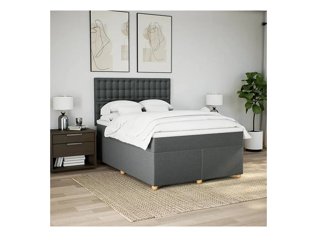 Boxspringbett mit Matratze Dunkelgrau 140x190 cm Stoff