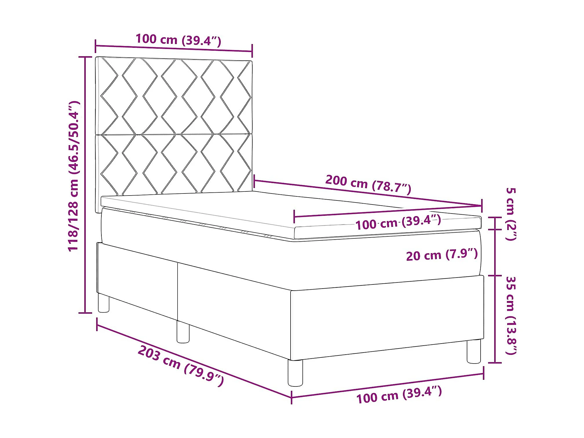 Boxspringbett mit Matratze mit LED Hellgrau 100 x 200 cm Stoff