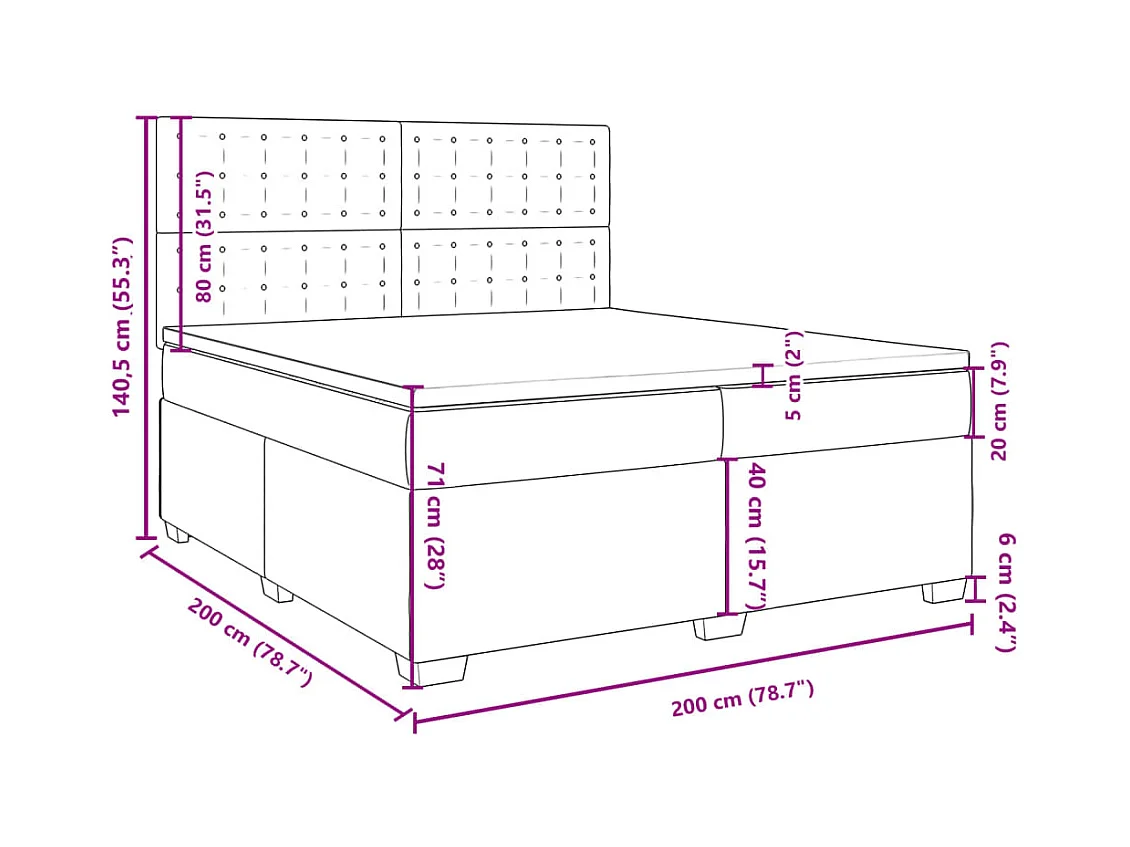 Boxspringbett mit Matratze Hellgrau 200x200 cm Stoff