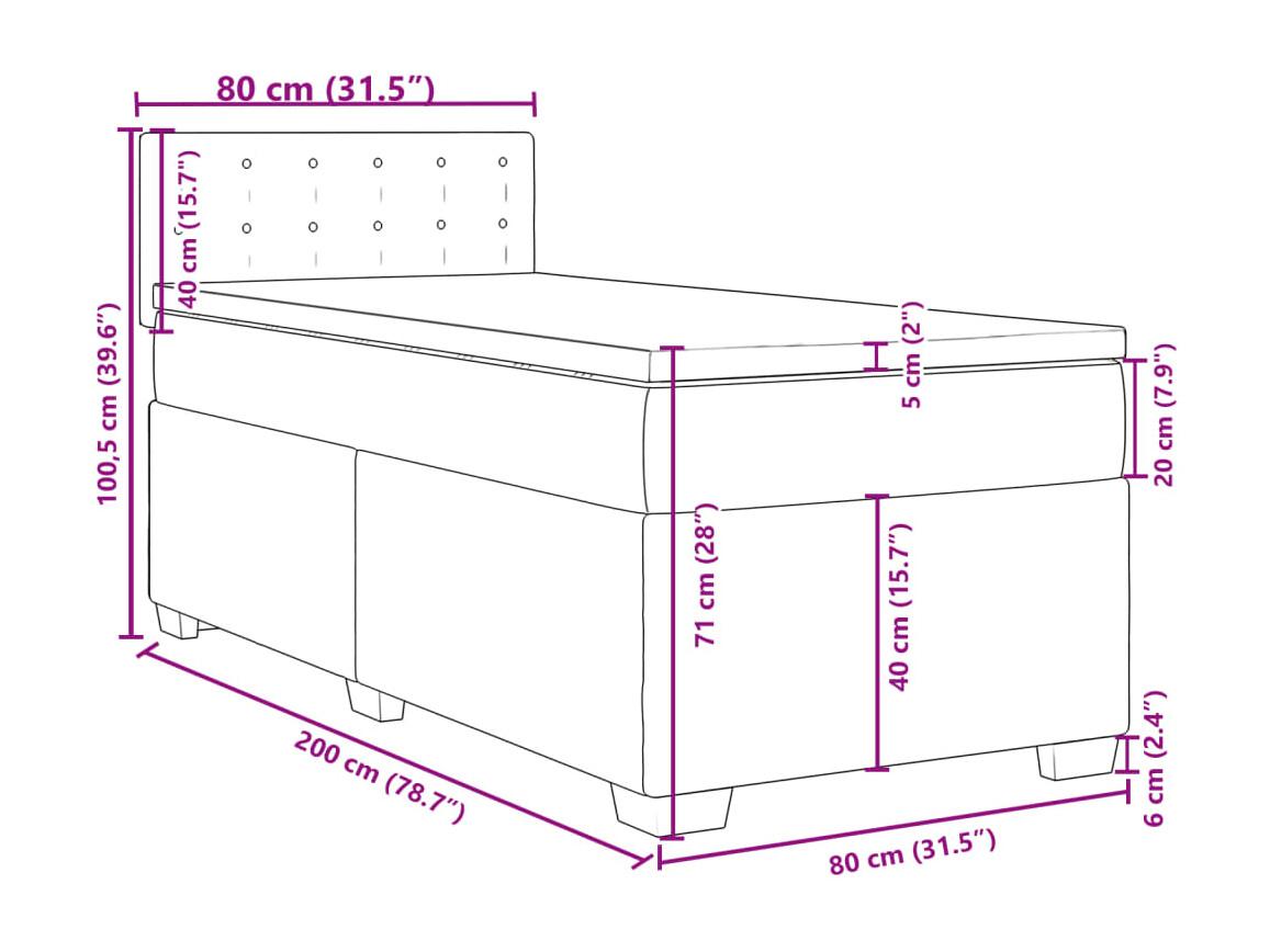 Boxspringbett mit Matratze Hellgrau 80x200 cm Stoff