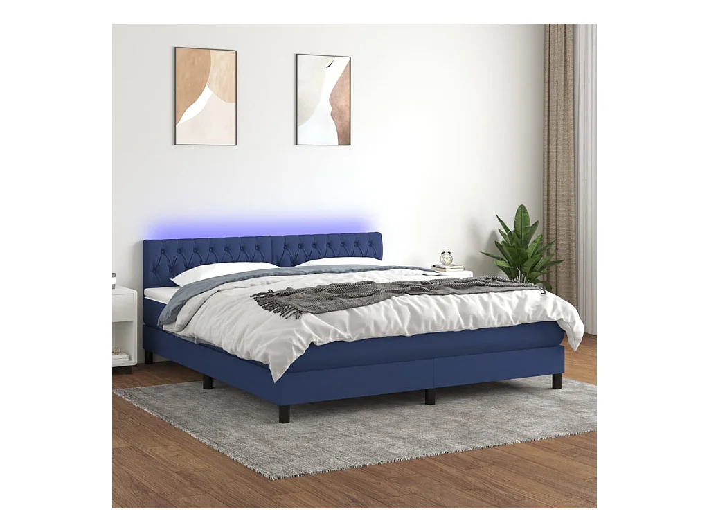 Boxspringbett mit Matratze & LED Blau 160x200 cm Stoff