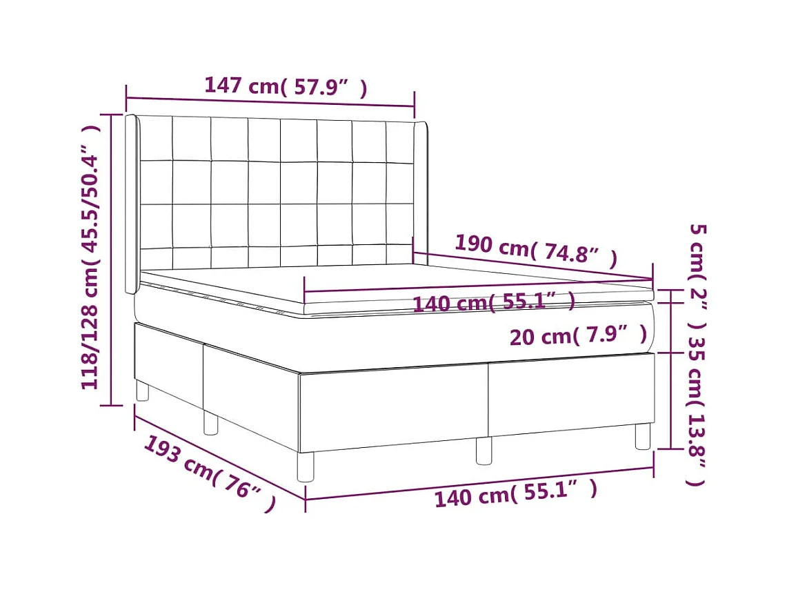 Boxspringbett mit Matratze & LED Creme 140x190 cm Stoff