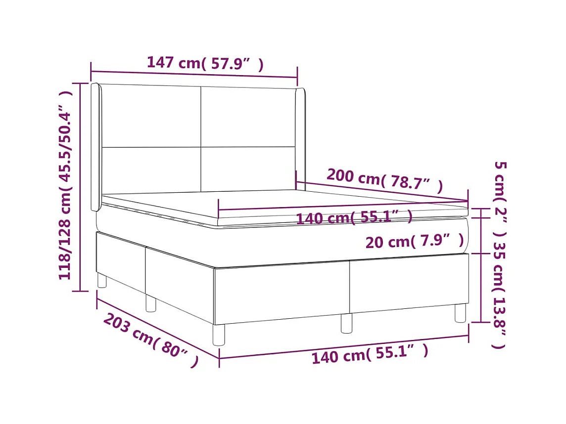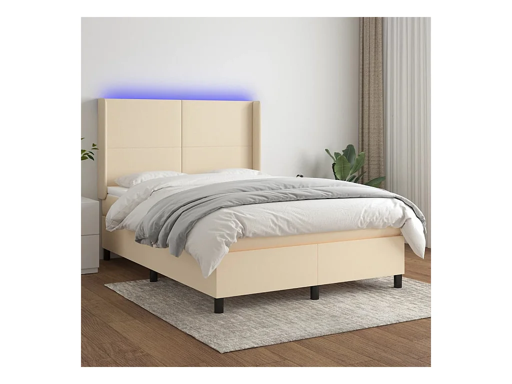 Boxspringbett mit Matratze & LED Creme 140x200 cm Stoff