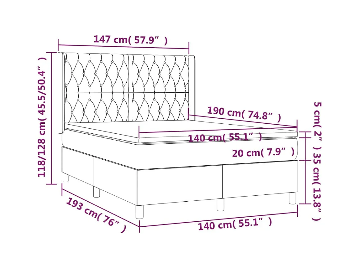 Boxspringbett mit Matratze & LED Dunkelbraun 140x190 cm Stoff