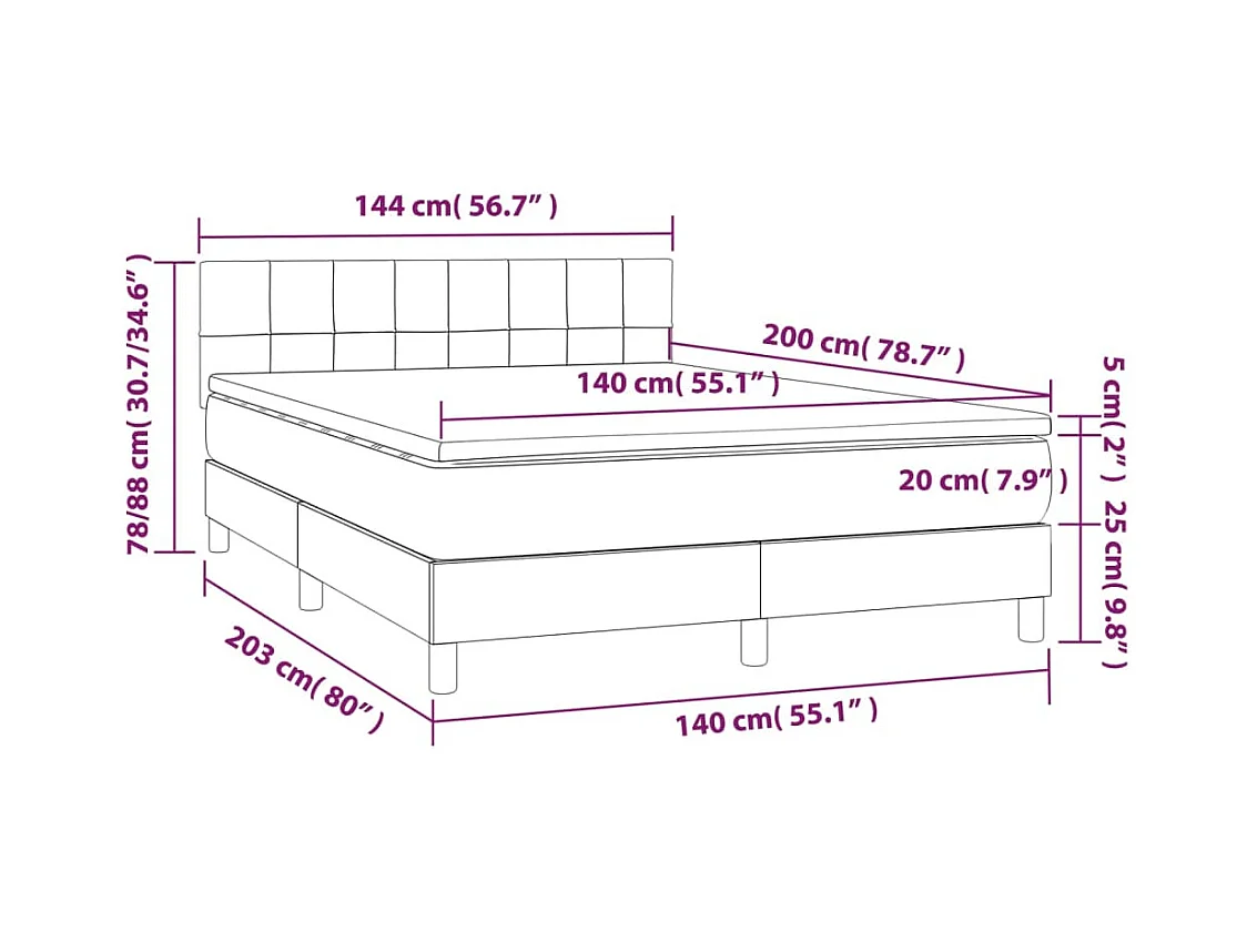 Boxspringbett mit Matratze & LED Hellgrau 140x200 cm Stoff