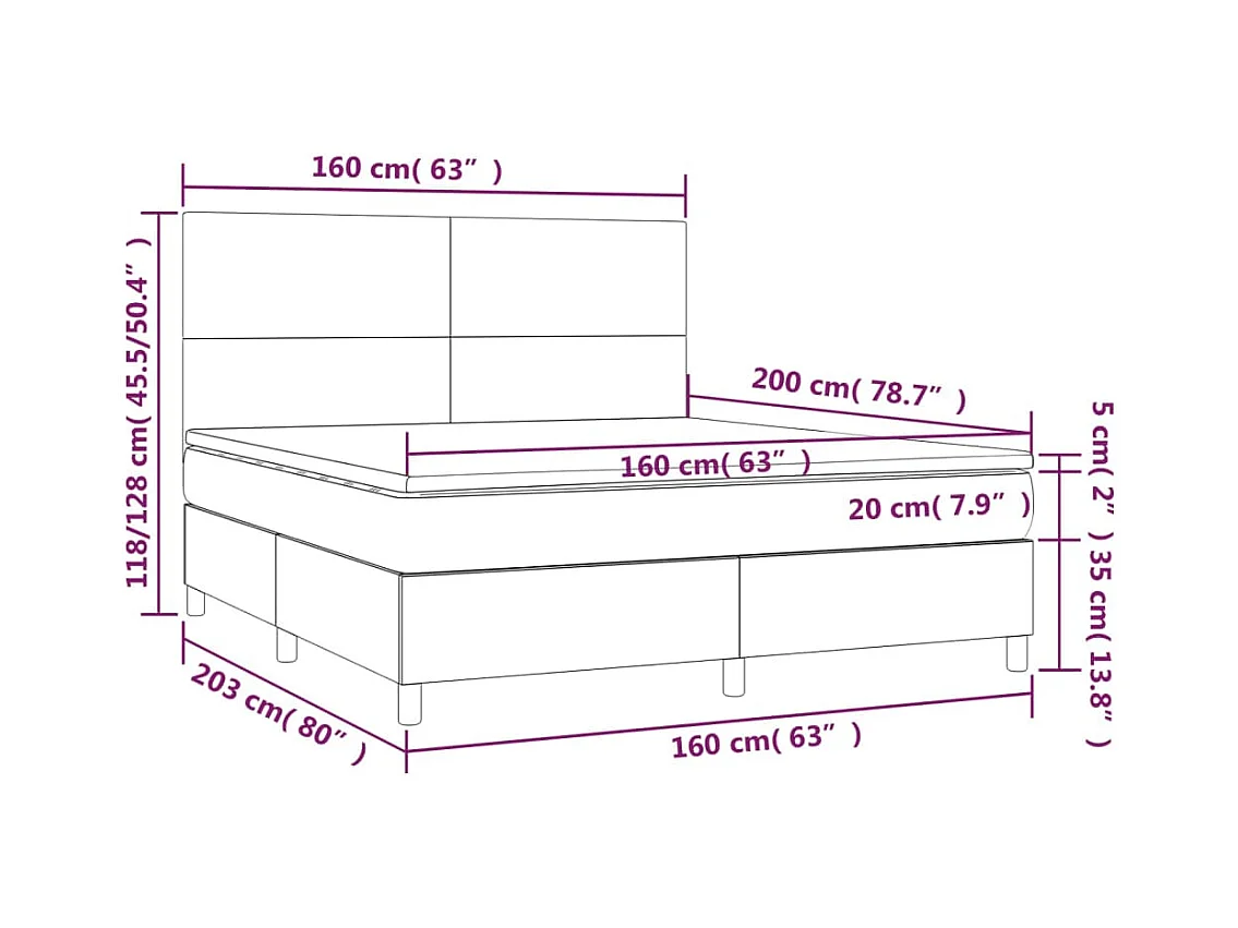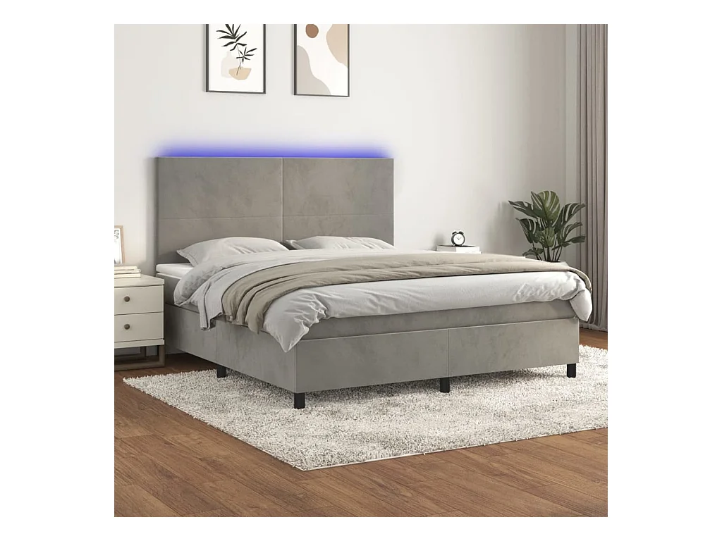 Boxspringbett mit Matratze & LED Hellgrau 160x200 cm Samt
