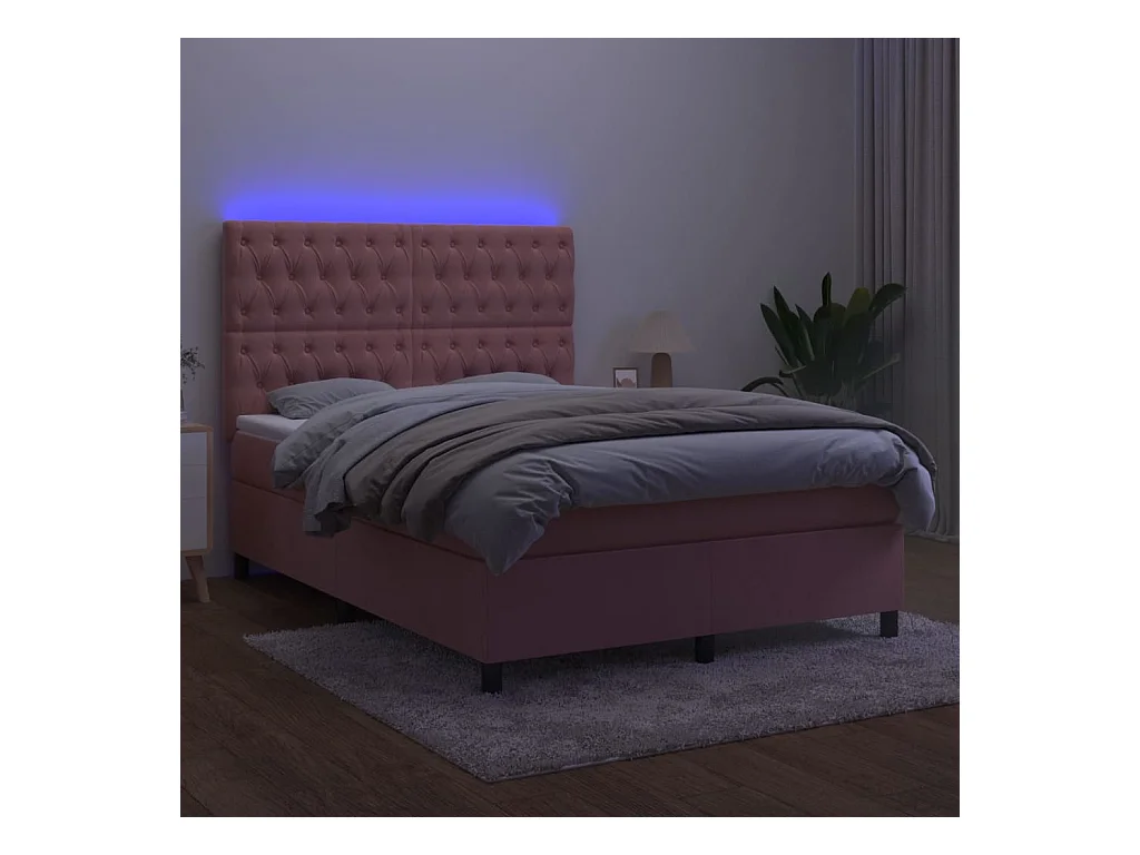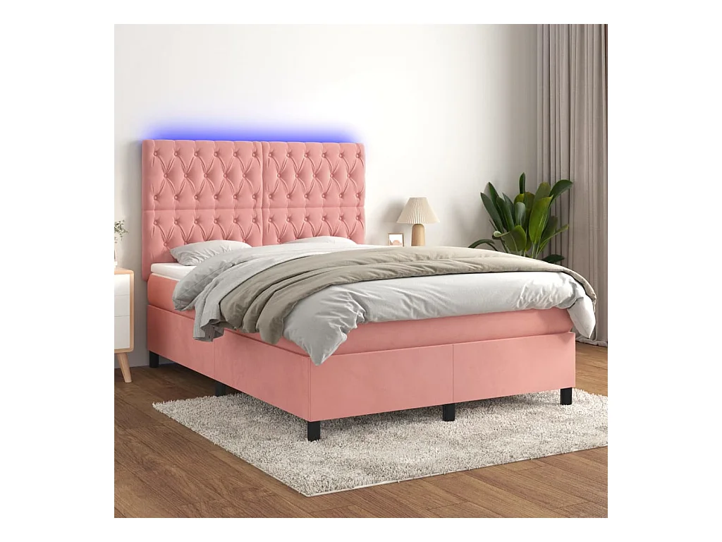 Boxspringbett mit Matratze & LED Rosa 140x200 cm Samt