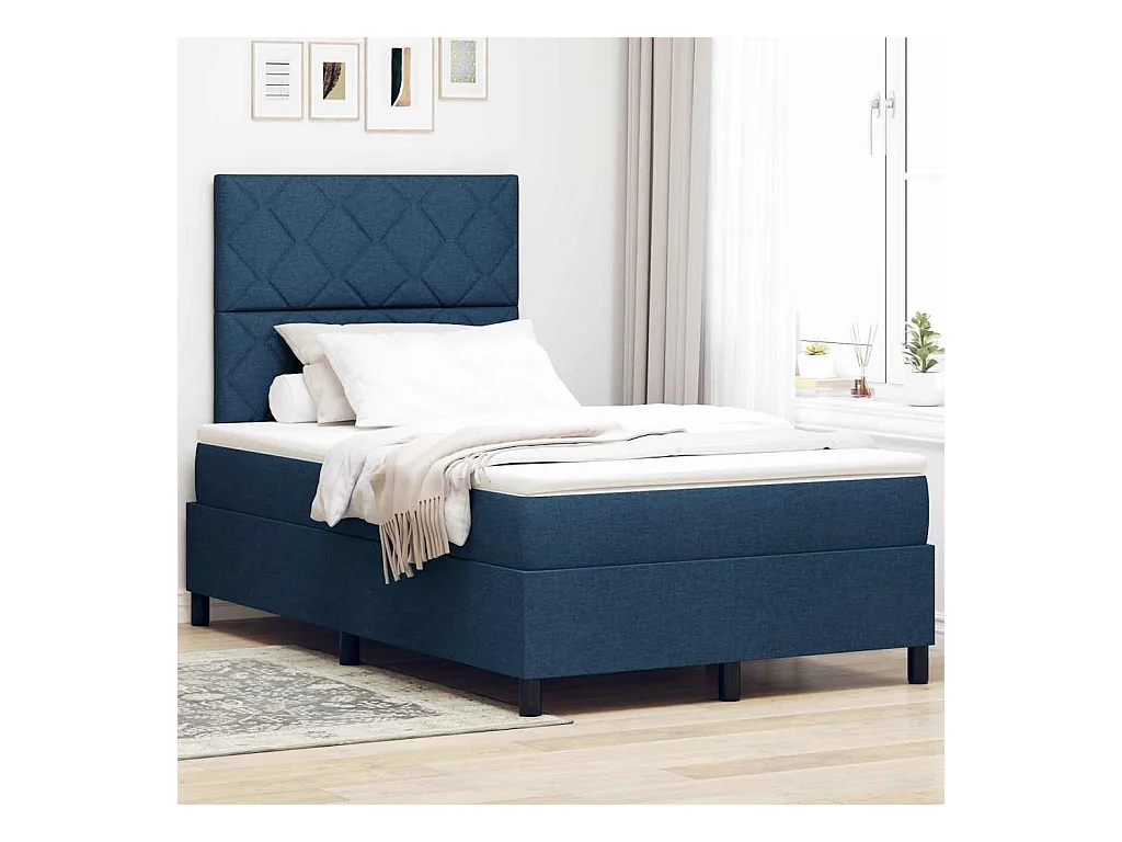 Boxspringbett mit Matratze mit Kopfteil Blau 120 x 200 cm Stoff