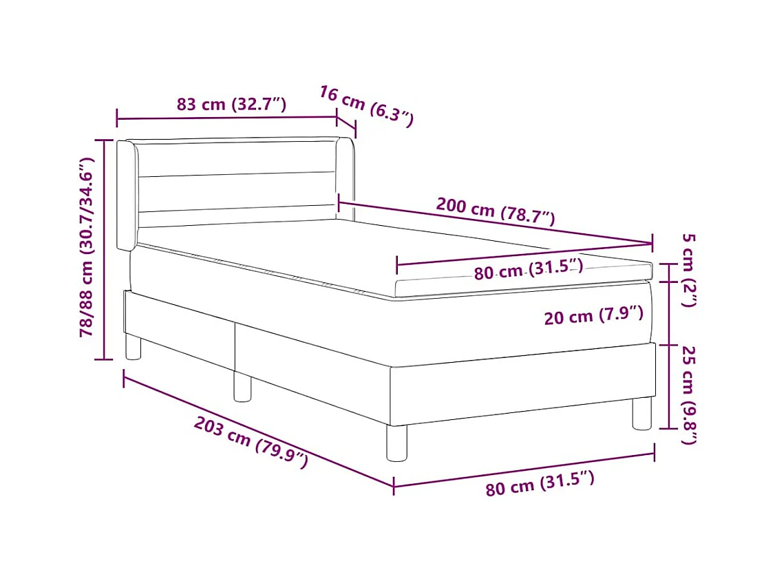Boxspringbett mit Matratze mit Matratze Dunkelgrau 80 x 200 cm